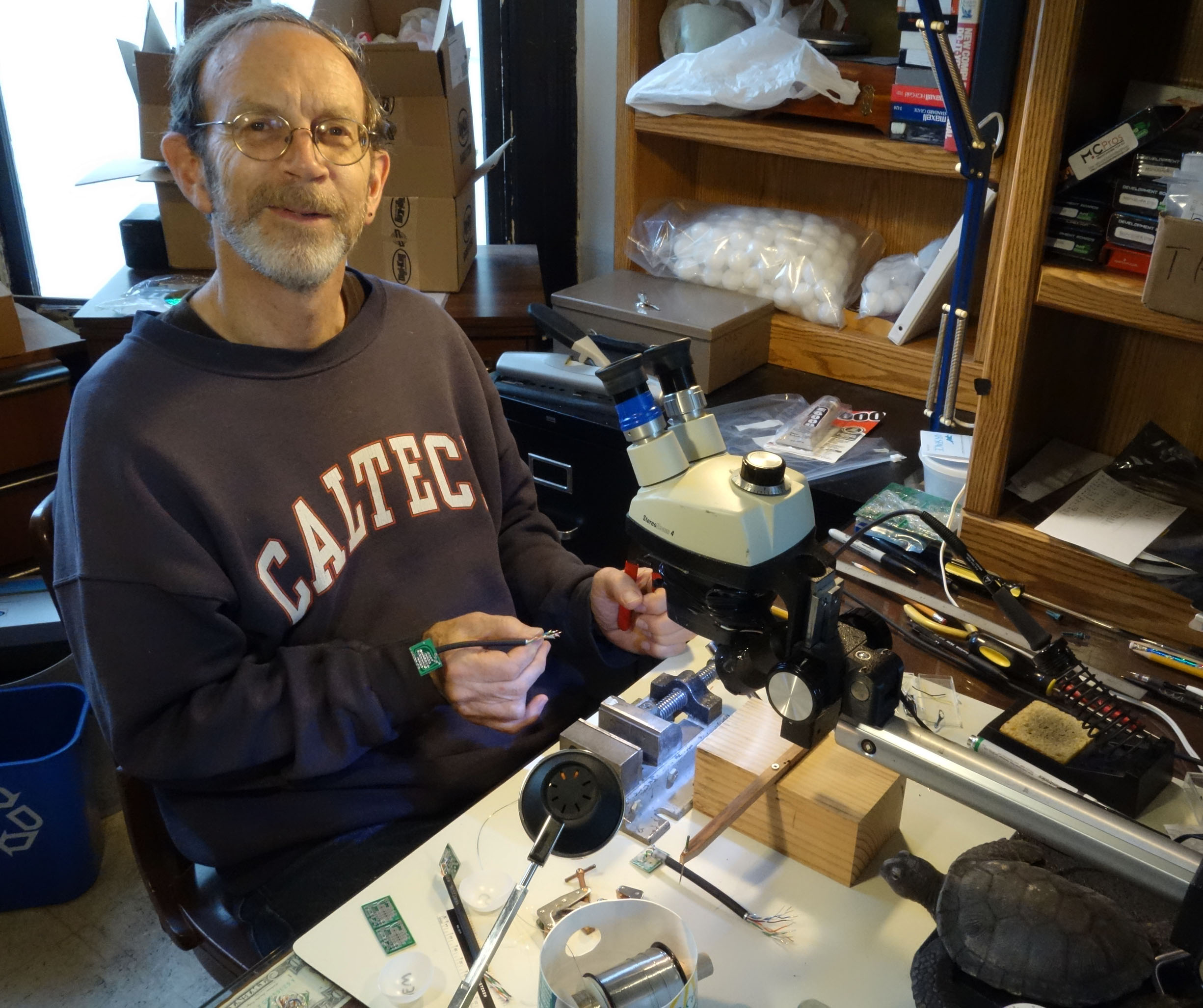 An electric powered design would have been the most straightforward approach. Electric motors are more efficient than gas, but the power density of gasoline is much greater than today's batteries. So until battery technology improves, gas power seemed the way to go. Goliath uses a single 30 Hp engine and a belt system to transfer power to the four propellers. The setup was chosen because at this scale, four smaller engines have a smaller power to weight ratio than a single larger engine.