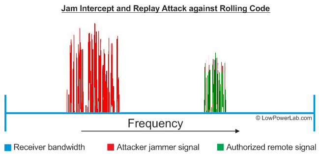 A more sophisticated attacker armed with a $20 RTL-SDR dongle and laptop could listen for more extended periods of time and record messages and then replay them in hope to cause a door to open for instance. Such a simple portable SDR solution (cf. portableSDR project) is elegantly explained by w2aew in this video: