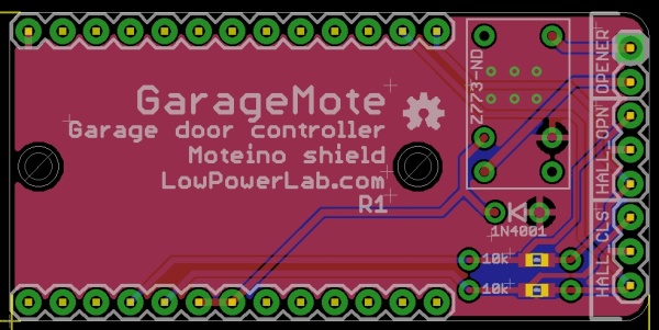 - a general purpose button which is wired to interrupt 1 (pin D3) of the Moteino. This is useful to wake it up from sleep and respond to whatever command you have it do. For instance, I've programmed it to browse through past received messages from the wireless network, or it can be used to access a user menu where you can choose different modes of operation.