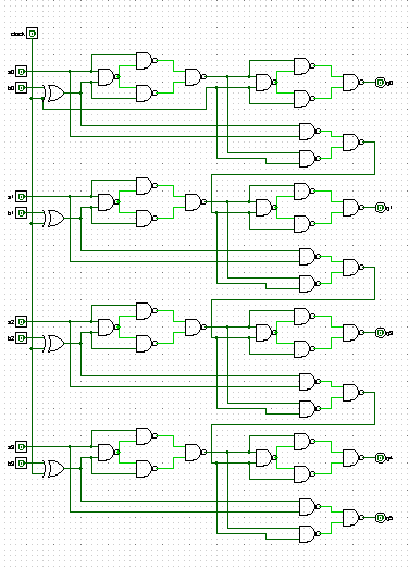 This is a discreet four bit adder I designed and constructed using 60 RTL NAND gates.