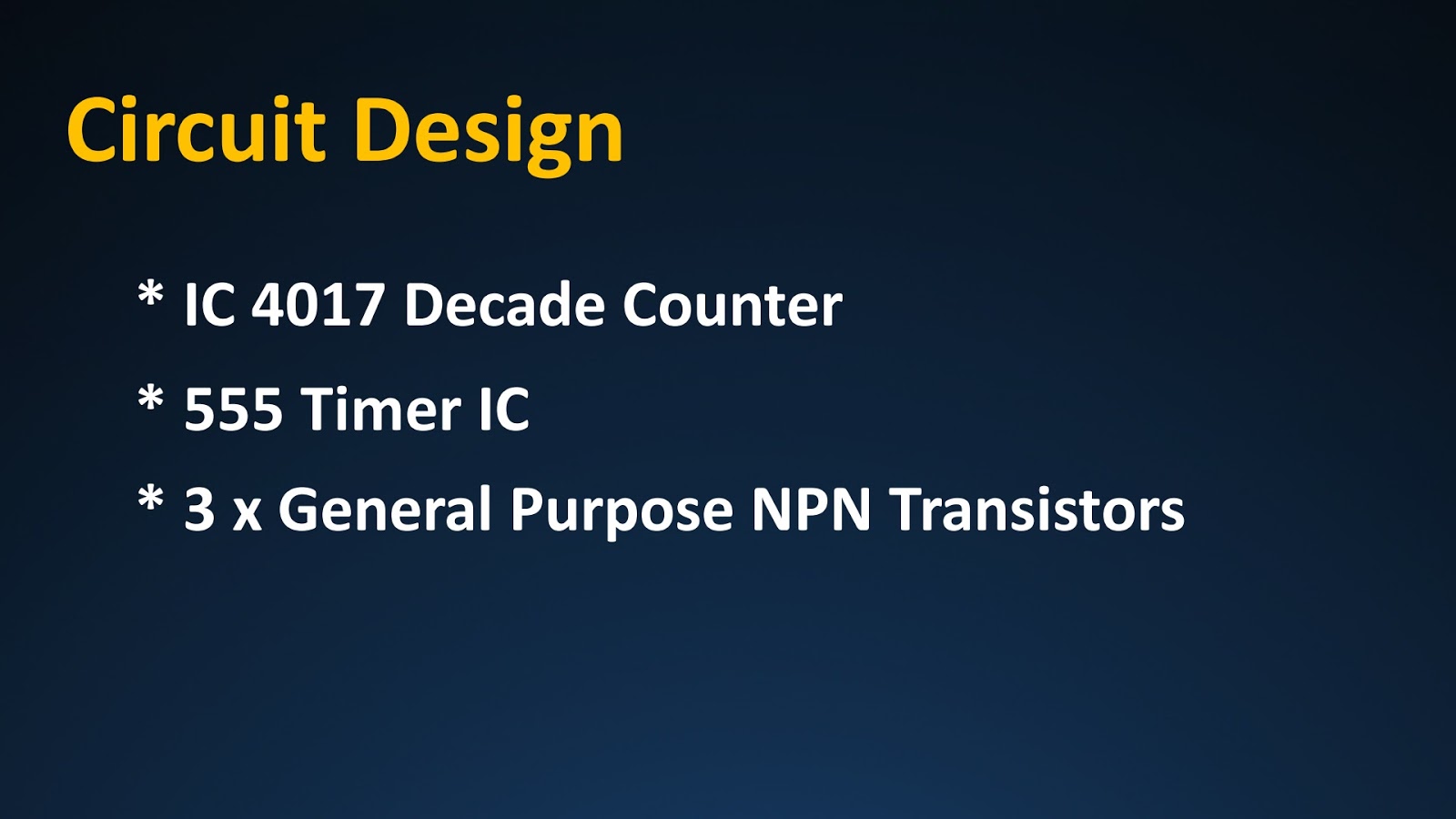 Lets start our discussion by assembling the circuit using IC 4017. IC 4017 is a 16 Pin Decade counter, it is used for low range counting applications. It can count from 0 to 10 (the decade count) sequentially in a pre-defined time and reset the count or hold it when required.