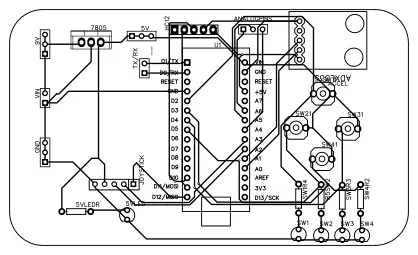 I also added a 7805, regulator which will helped me to provide an input voltage between 7 volt and 35 volt in the input, so that I can use a 5 volt USB power supply, 9-volt battery or even a 12 volt lithium polymer battery without any issues.