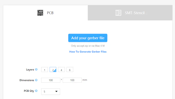 Go to JLC PCBs website and create a free account. Once you have successfully created an account, Click on “Quote Now” and upload your Gerber File.