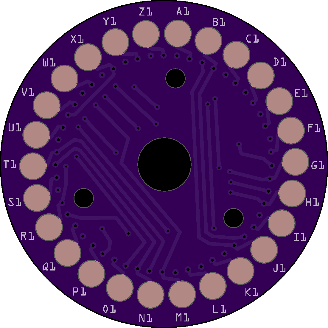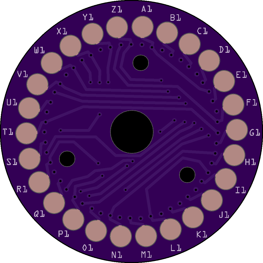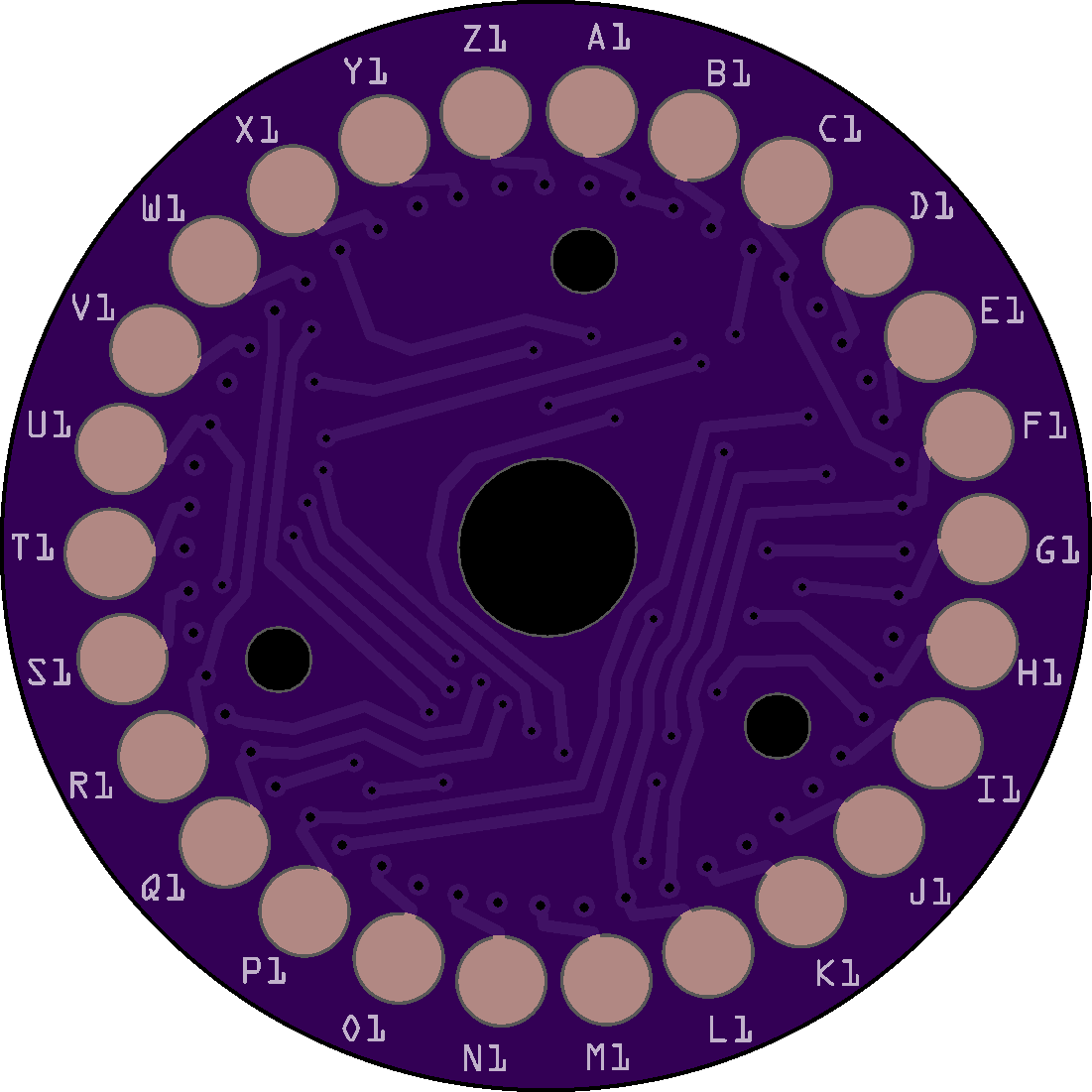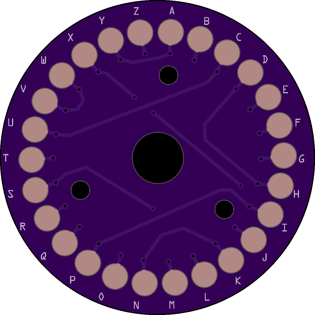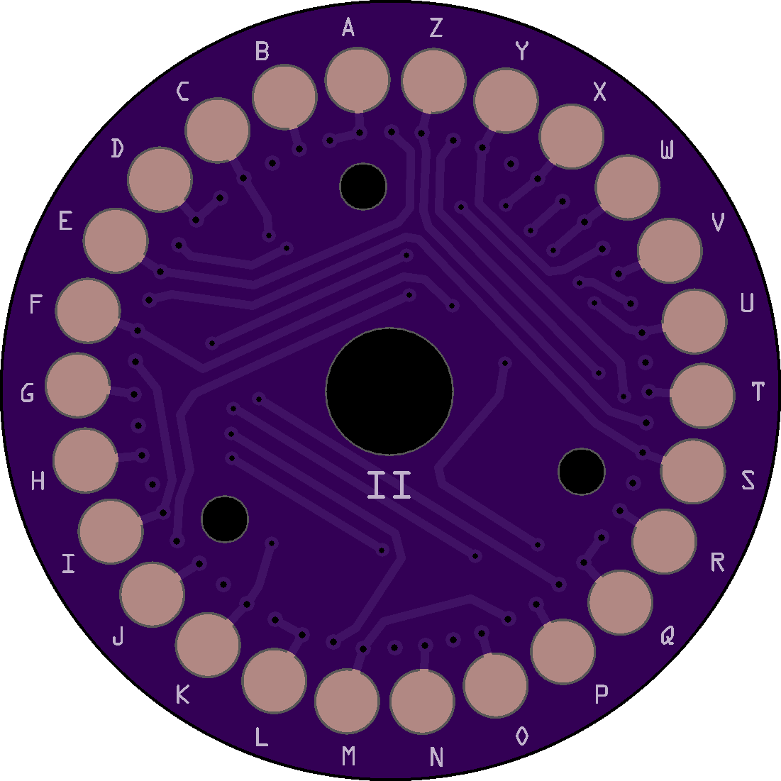 The problem is the attachment holes are in the wrong place for all of the rotors and the ETW (Entry Disk). The only disk that aligns properly are the UKWs (Reflectors). Because the Enigma operator sets up the machine via 3 windows (so they can see the letters or numbers on the rotors) in the closed case, the viewing angle requires that the first contact (top position) on all disks is NOT "A" but "B"; consequently, "B" is always at the top so you can see "A" in the window. The position of the holes in your PCBs puts "A" at the top. Here is a link that goes into more detail.
