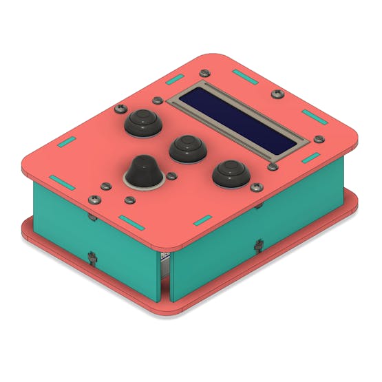 The case has an LCD display, 3 buttons, and an MQ2 sensor.