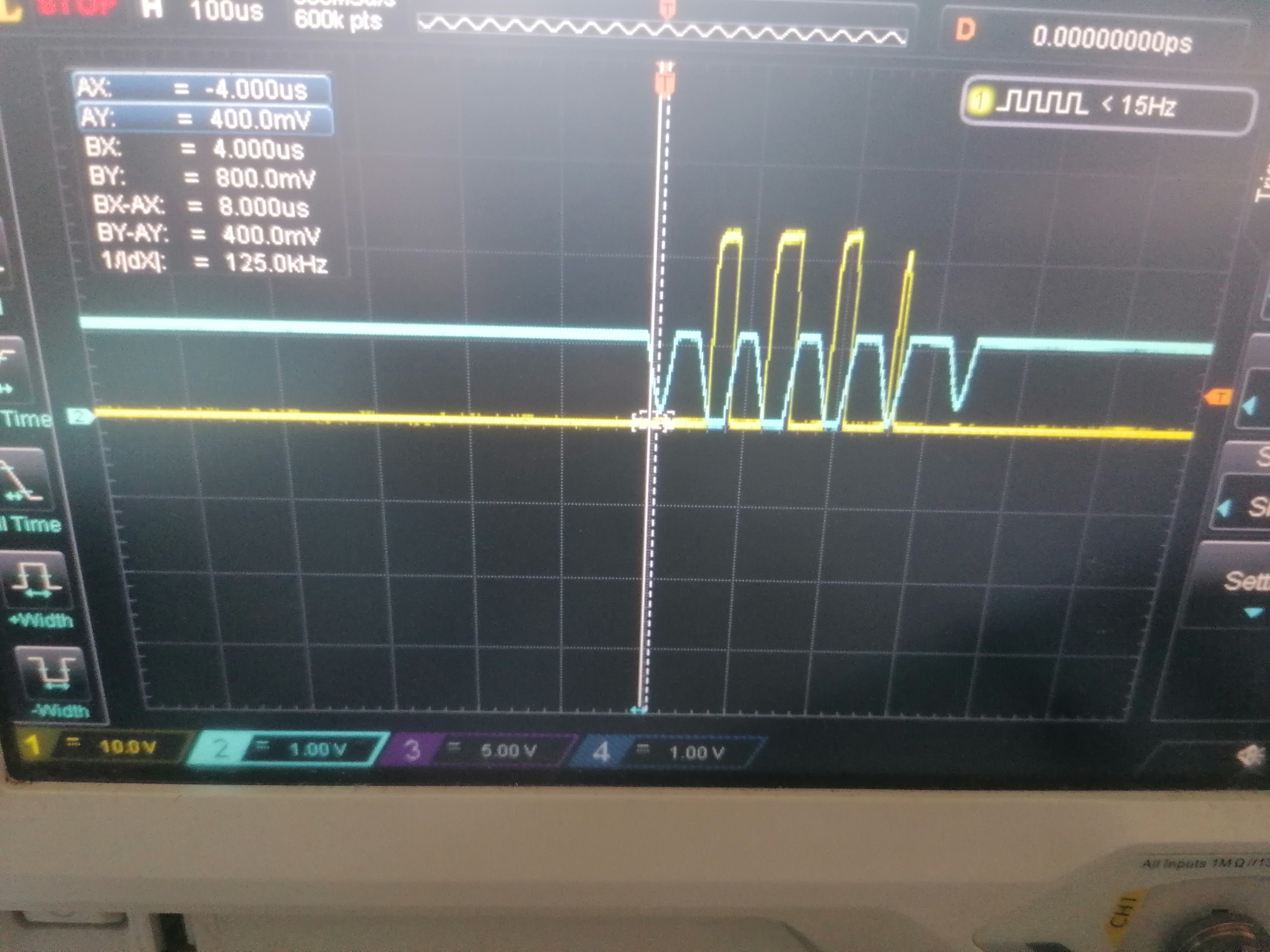The device has two outputs: an analog output, where an oscilloscope can be connected, and a digital output with a logic level of 12V. The digital output (high state when a pulse occurs, low state otherwise) can then be collected and analyzed.