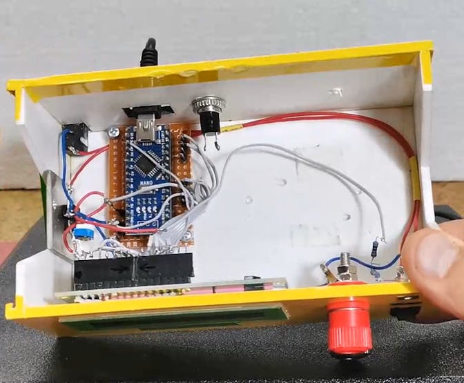 - Arduino microcontroller, and LCD display which are connected according to the given schematic diagram, and it is powered directly from the USB port.