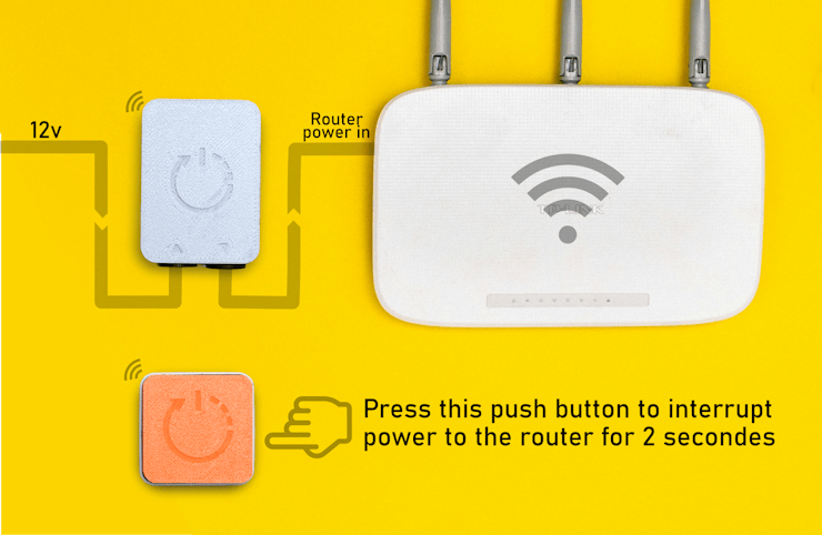 To make this process easier, I've created a wireless switch that lets you turn the router off and on without needing to be near it. Press a button at your desk, and the router will be turned off for two seconds, and then it will turn back on automatically.