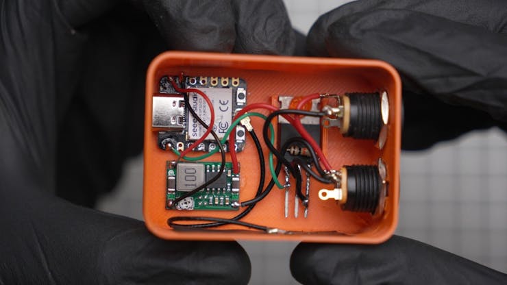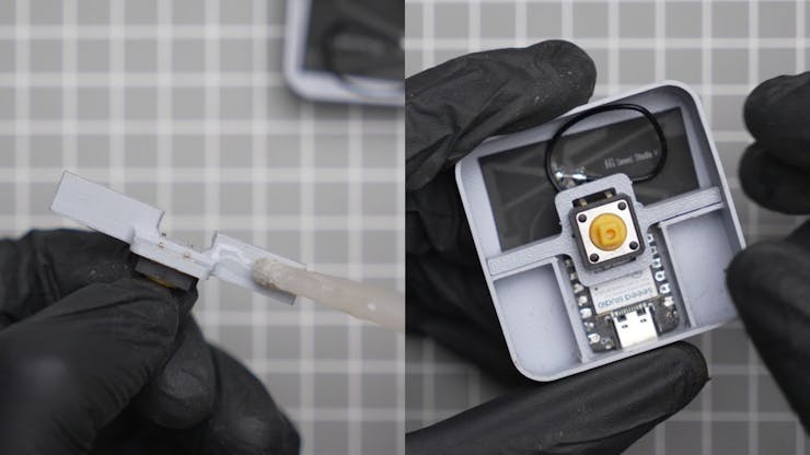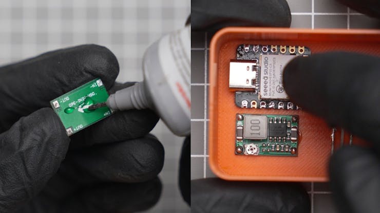 Glue both the step-down converter and XIAO ESP32C3 into the 3d print