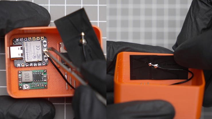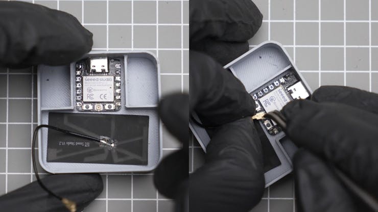 stick the antenna into the body of the 3d print and connect the antenna port to XIAO