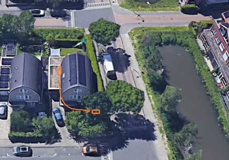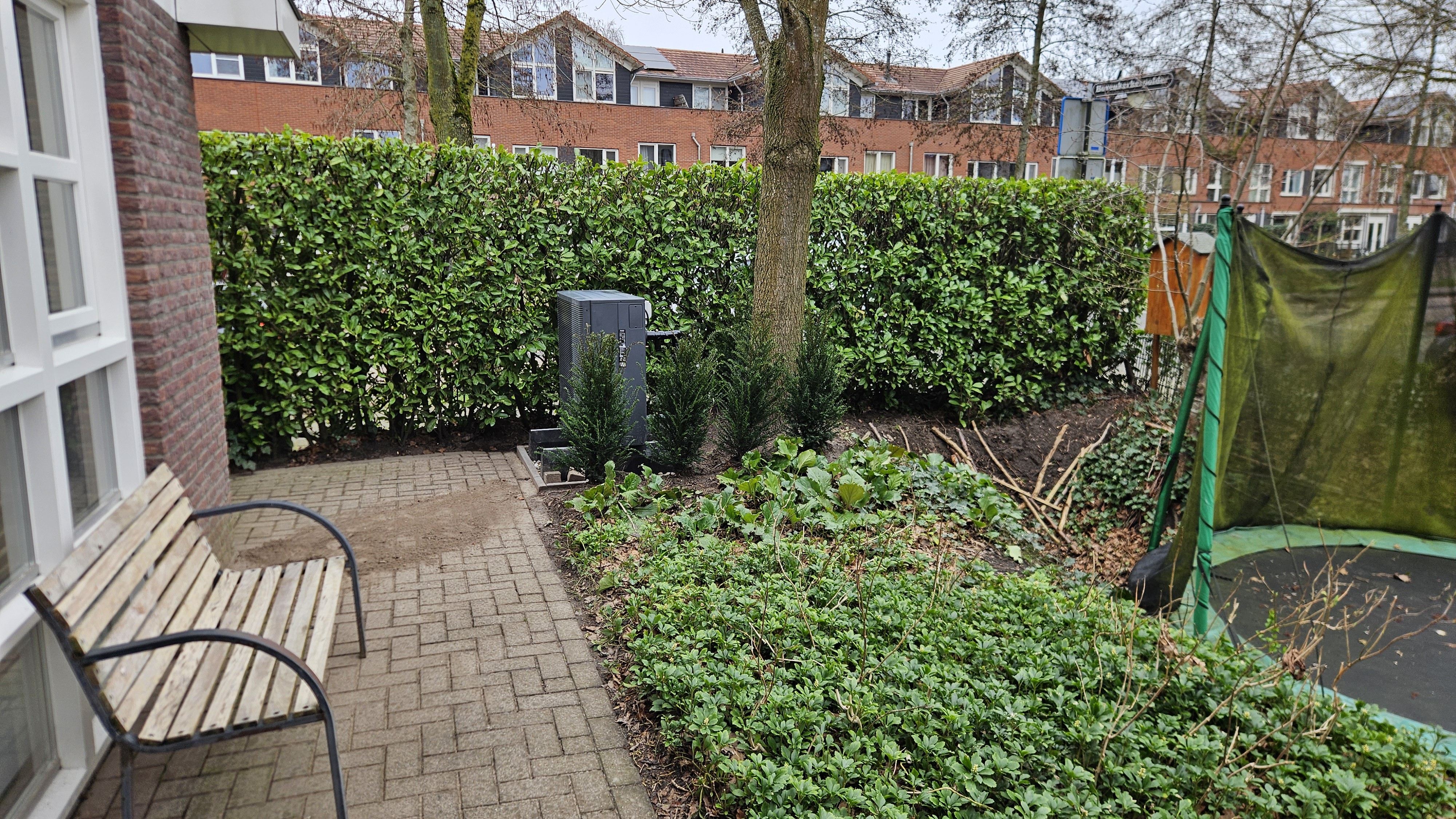Op de hoek voor het huis, kan het geluid het geluid goed weg en staat die ver van de buren. Voor de buren berekende ik 29 dBA en 34dBA voor mijn dochters slaapkamerraam (op 4-5m), ver onder de 40 dBA. Schimmeltechniek had destijds ingeschat dat geluid geen probleem was, maar vanaf 1 januari 2024 hadden ze eigenlijk een berekening moeten doen, daarom hebben ze voor het verplaatsen van de buitenunit flinke korting gegeven. De buitenunit is naar de voortuin verplaatst. Daarna heb ik er een paar struikjes omheen gezet
