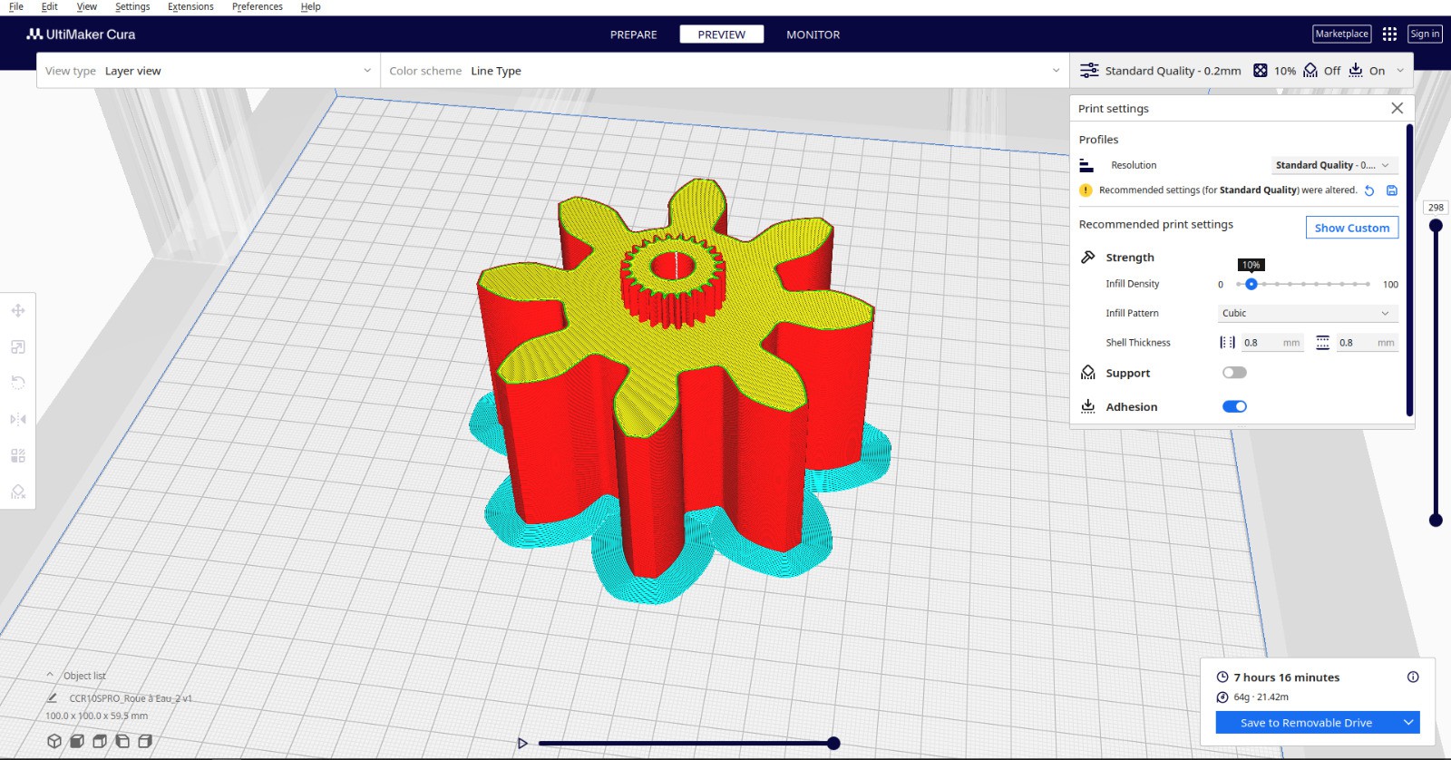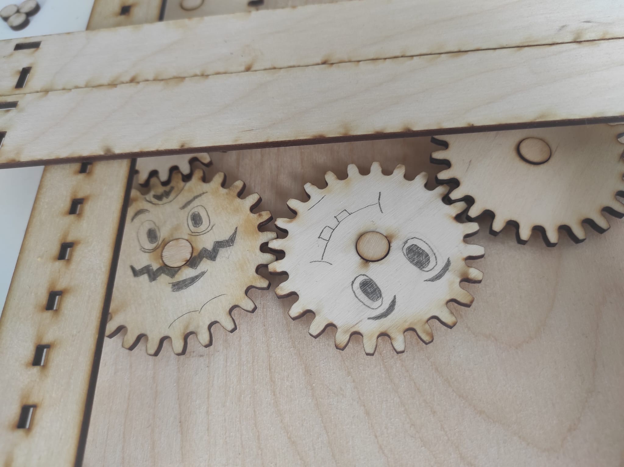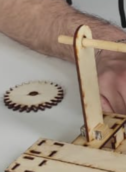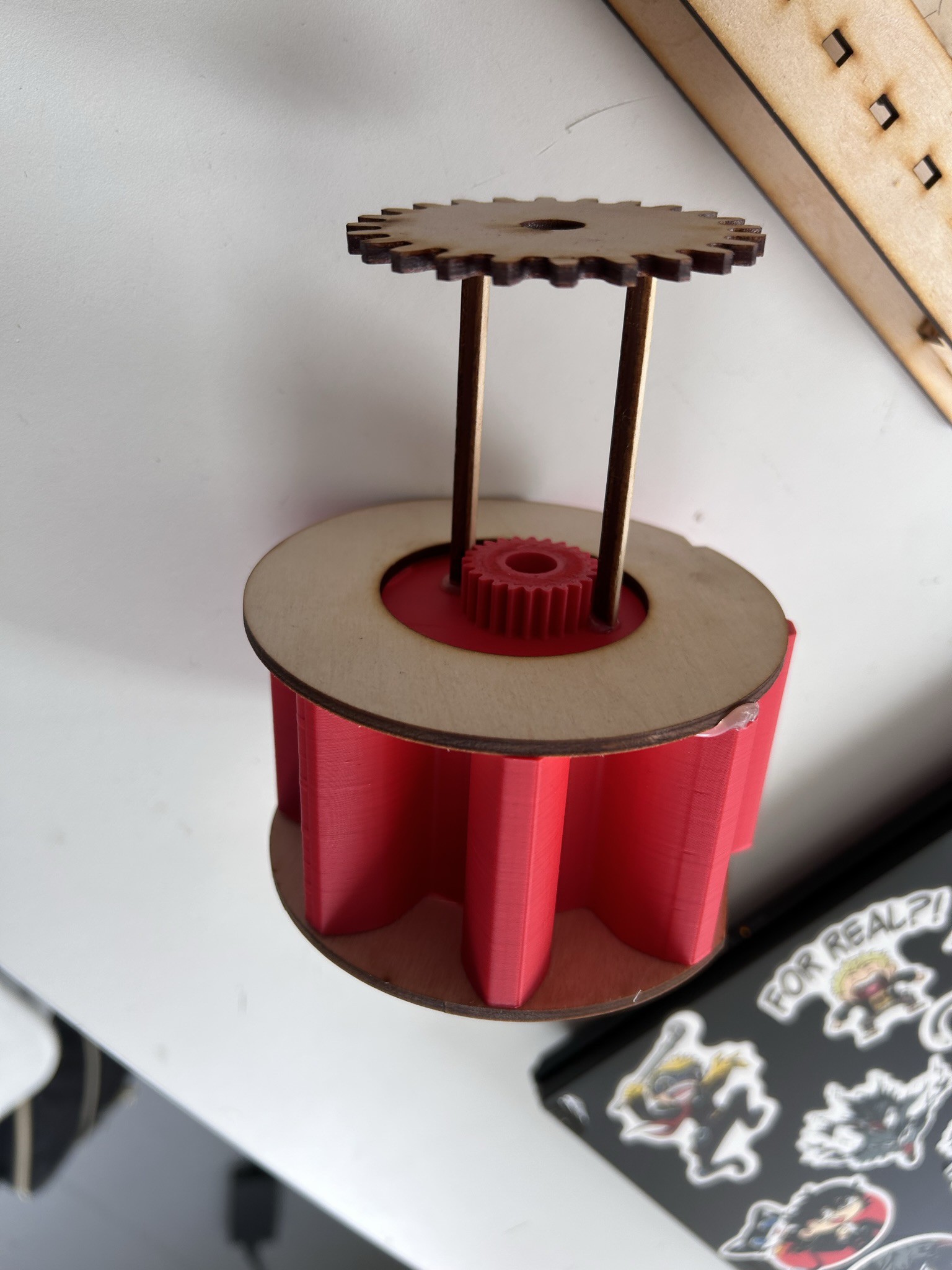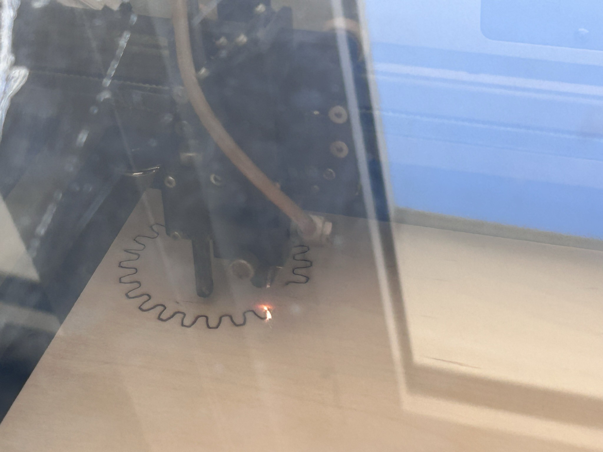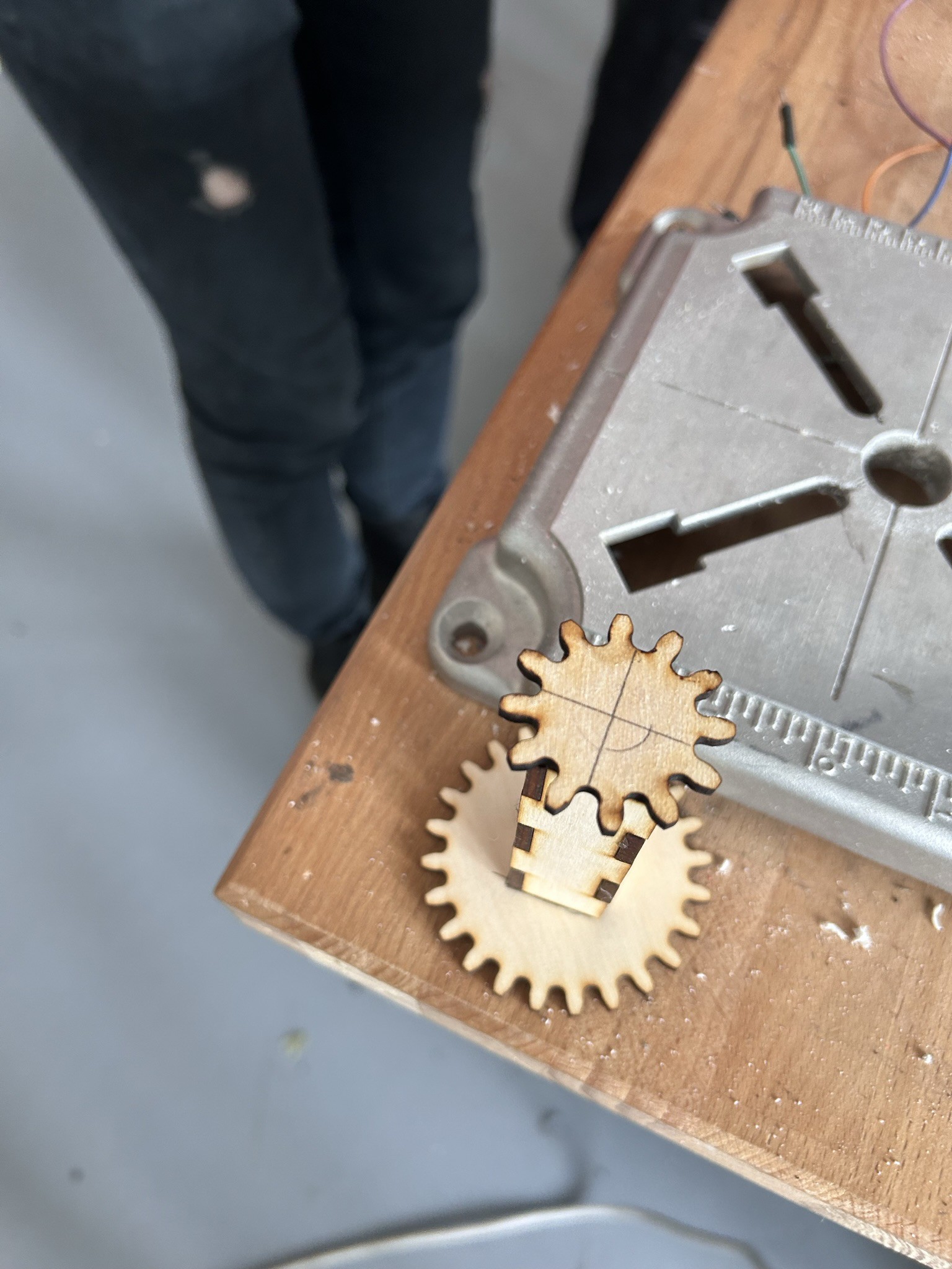 Then to completed the link with the based, we had to laser cutted a small gear (so first we have to design it, and it takes time)