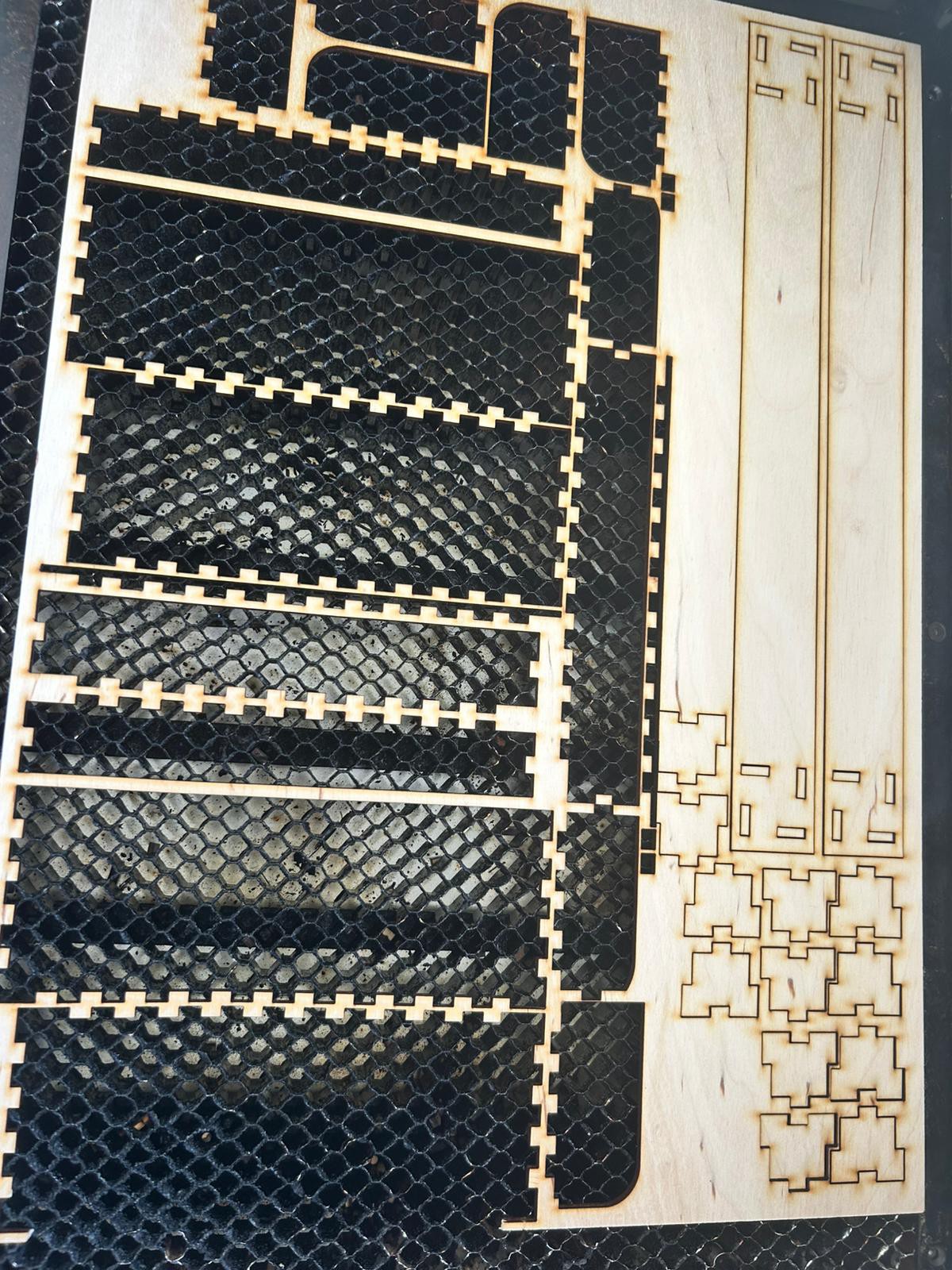 Because we had other courses we couldn't do anything more, however we planed to do the other parts on tuesday and wednesday, because we had more free time but also because we could have a better access to the laser cutter