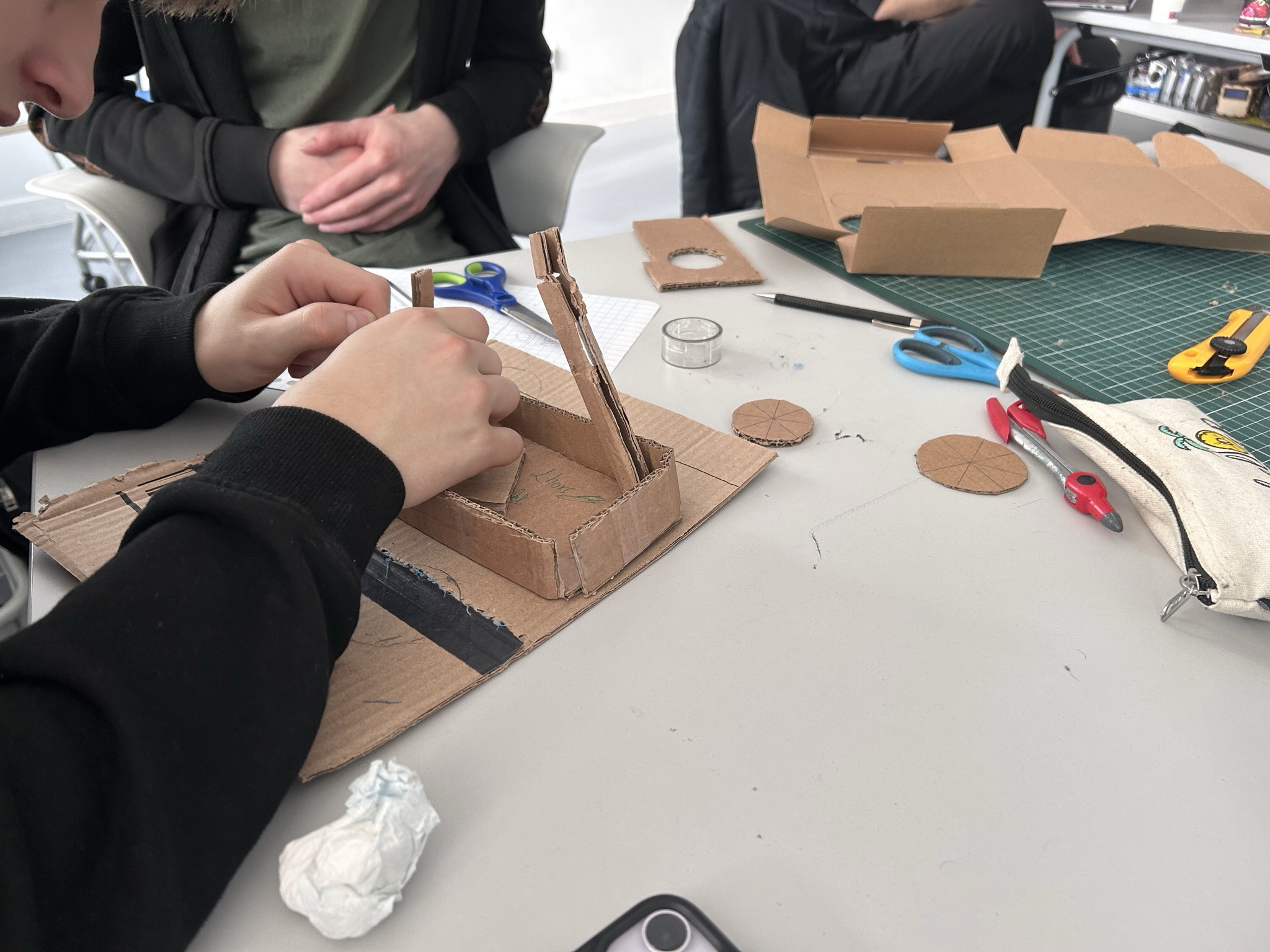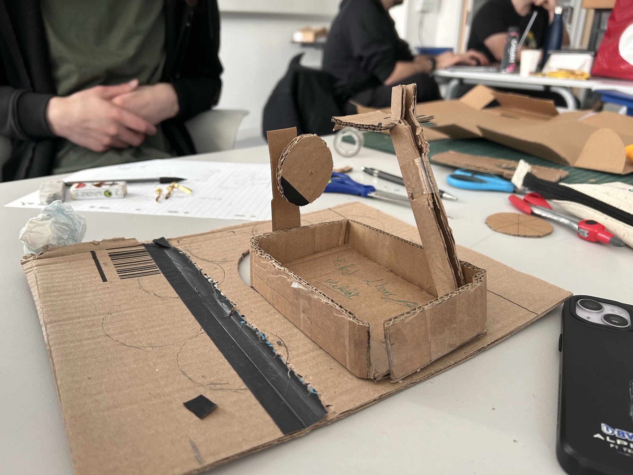 During this session we really improve the whole project, we made a first version of the project upgrading the first mock-up made the week before. The system work logically but we didn't use this much water because water can destroy cardboard