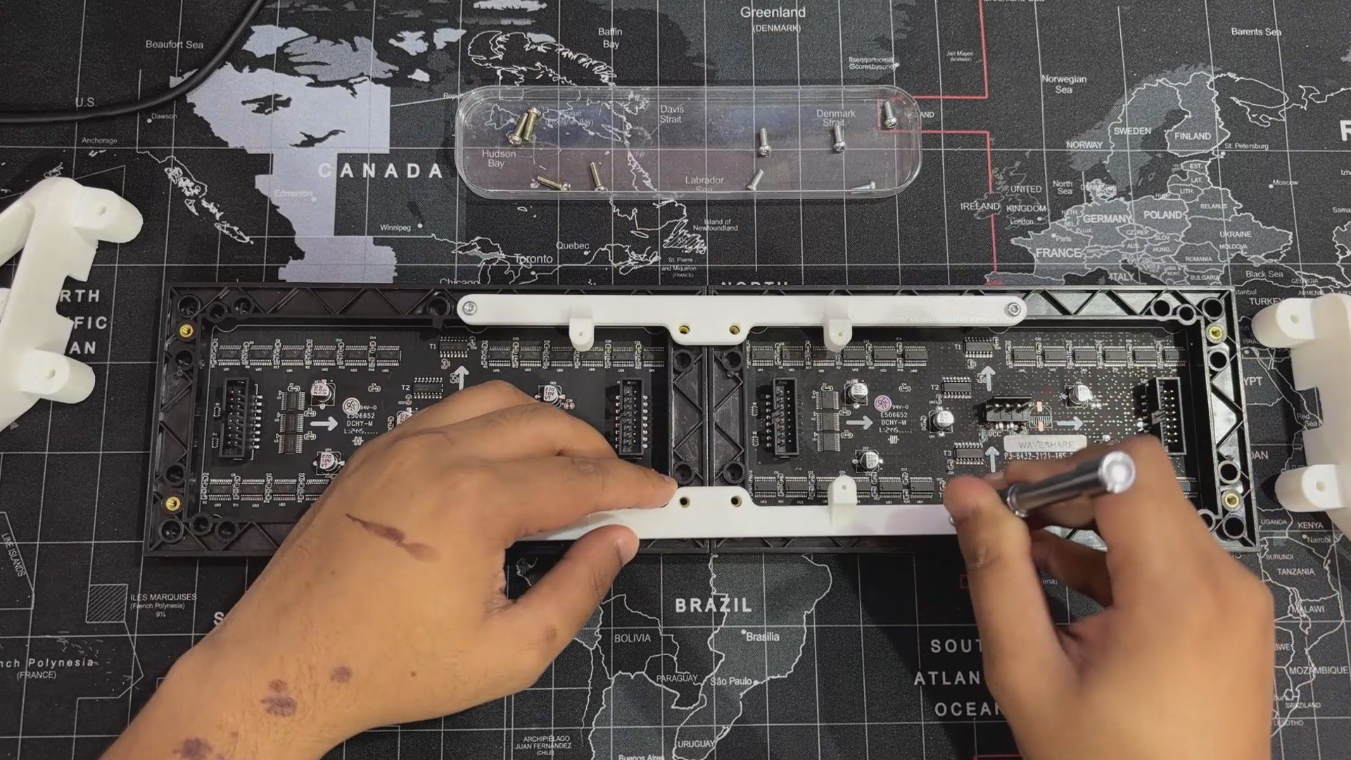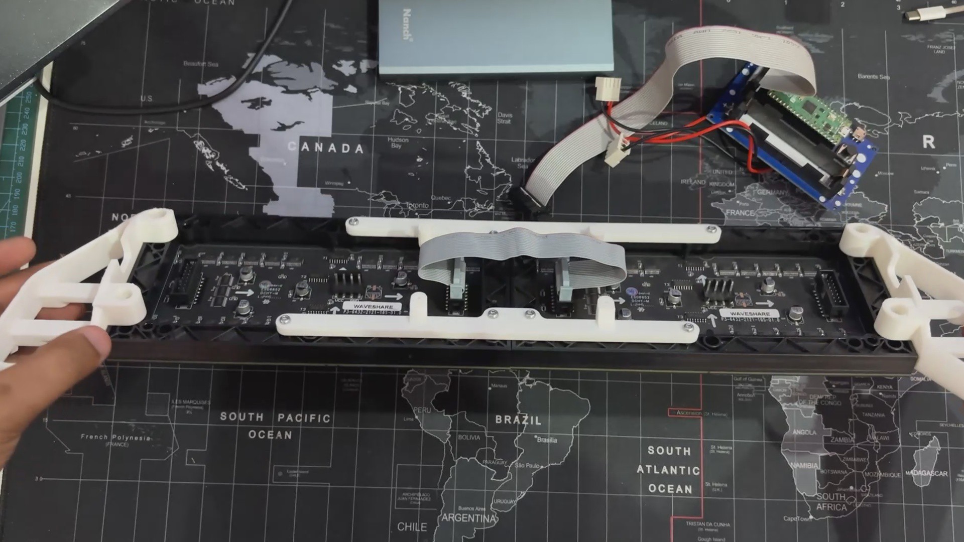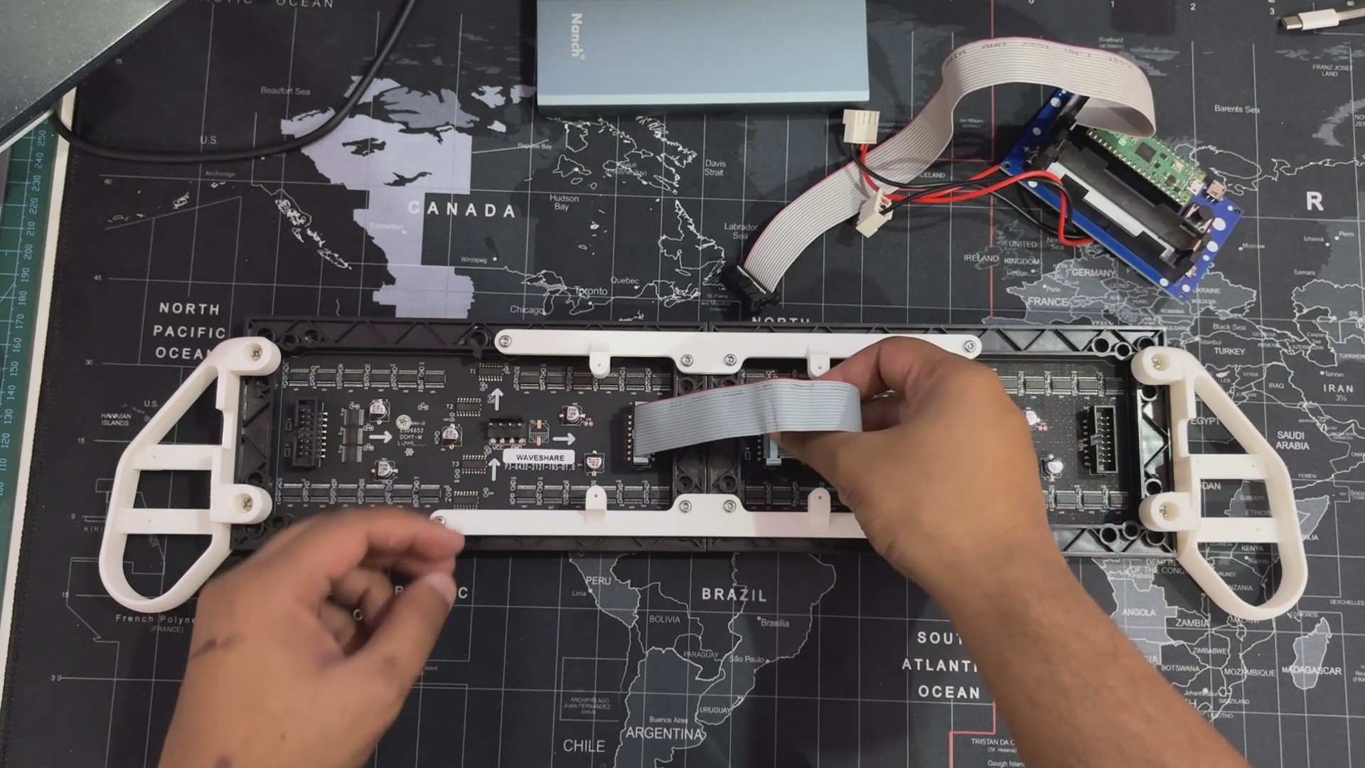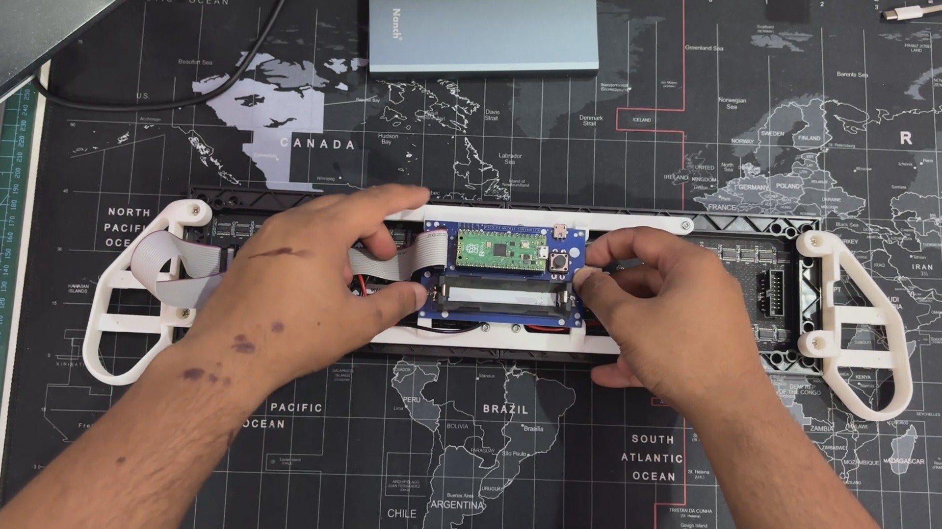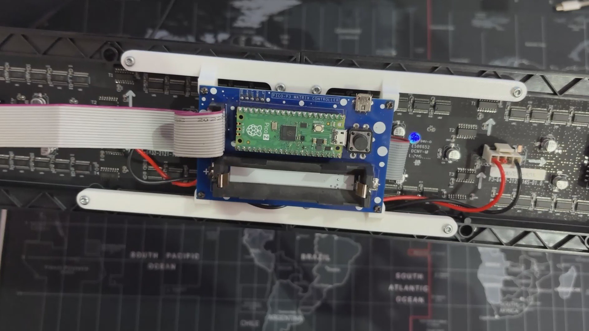 We reused the original switch board and PICO driver circuit, securely putting them below the matrix. To structurally unite the two panels, we created and incorporated two customized Frame Holder components that link the panels and keep them aligned.