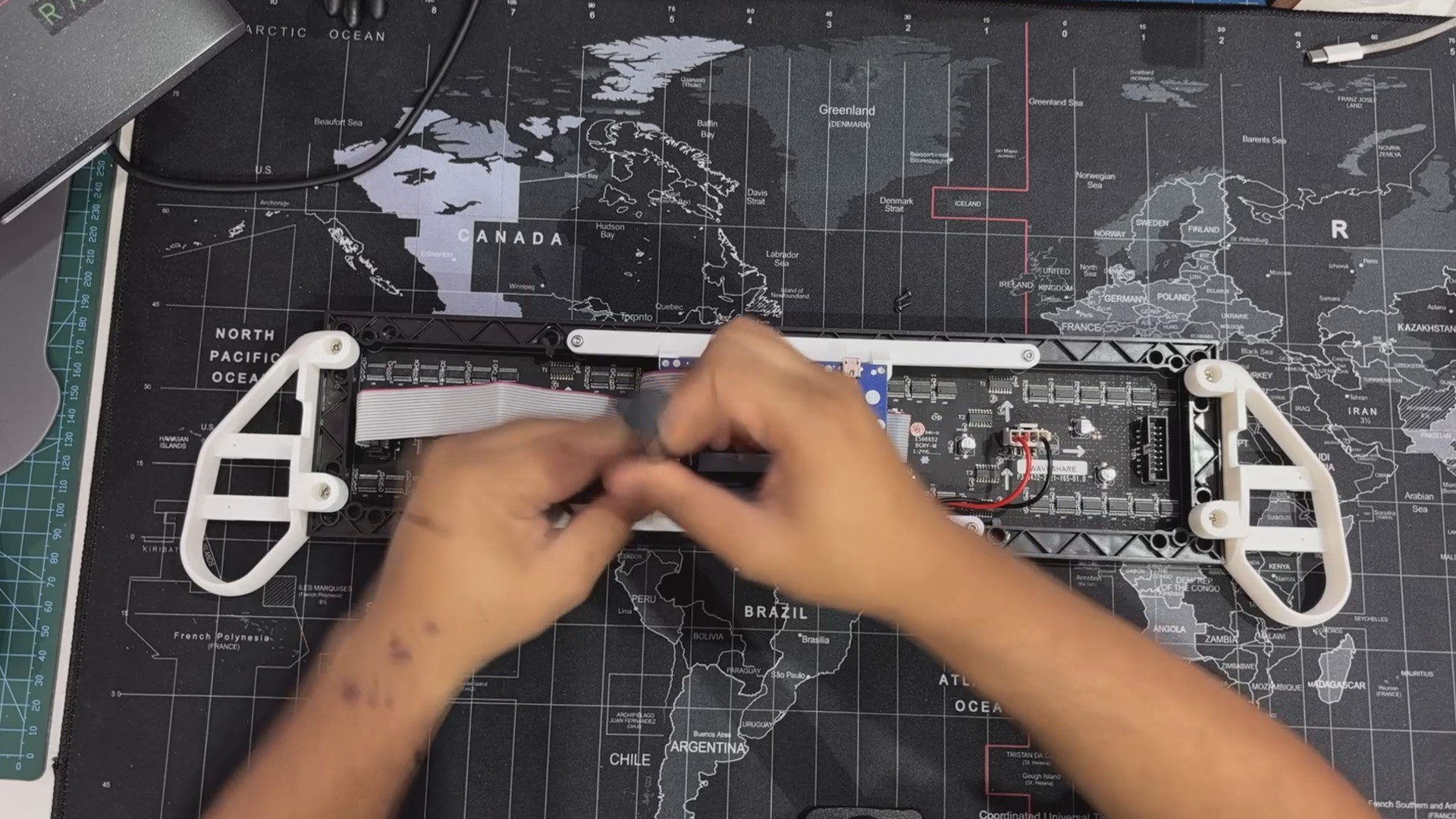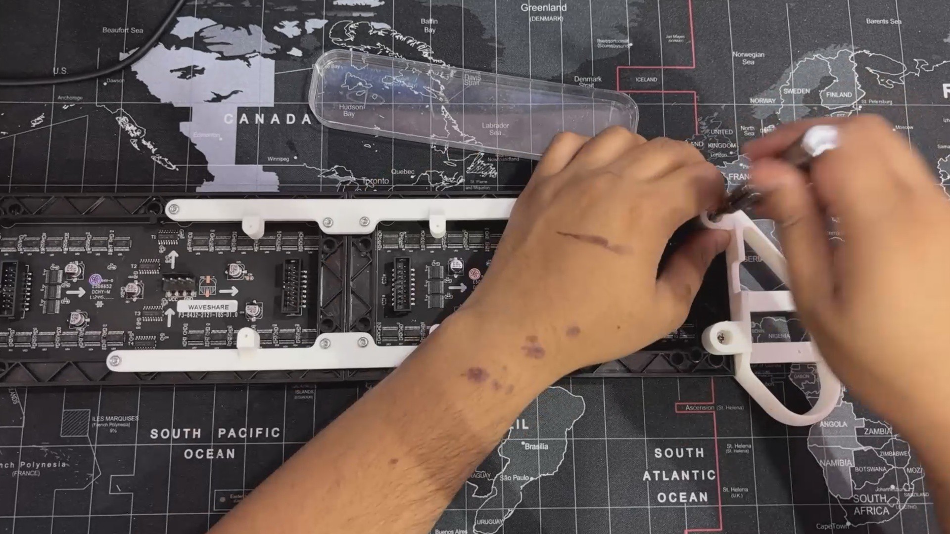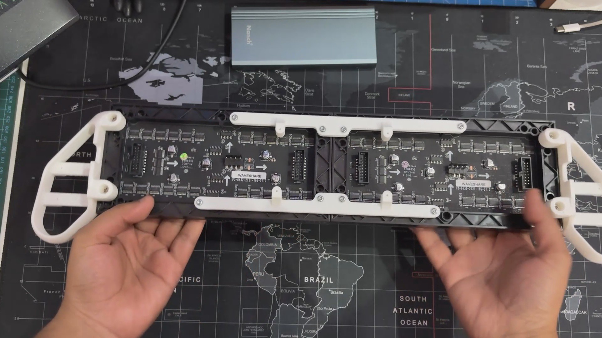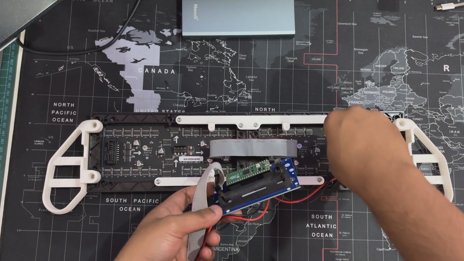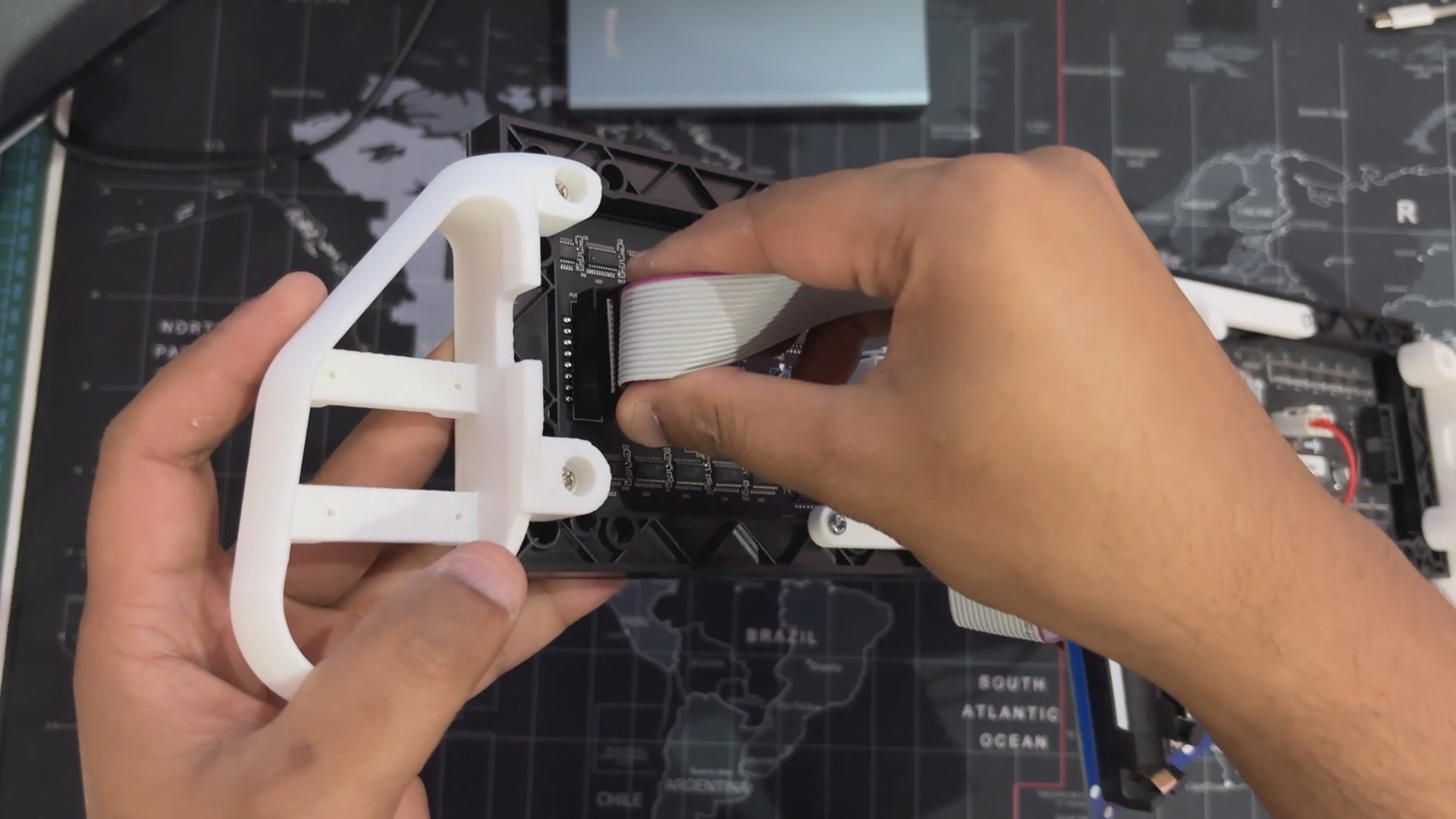 We reused the original switch board and PICO driver circuit, securely putting them below the matrix. To structurally unite the two panels, we created and incorporated two customized Frame Holder components that link the panels and keep them aligned.