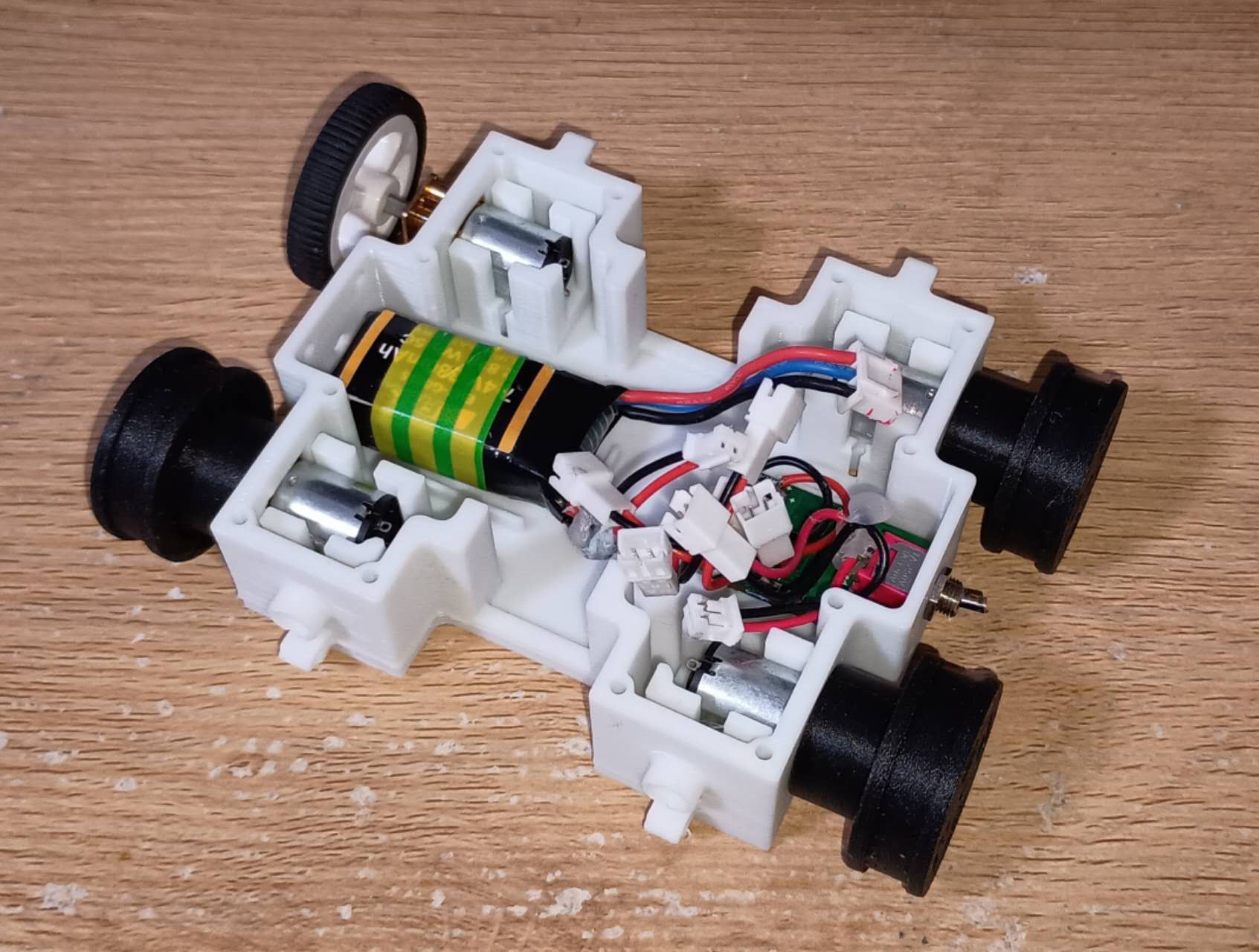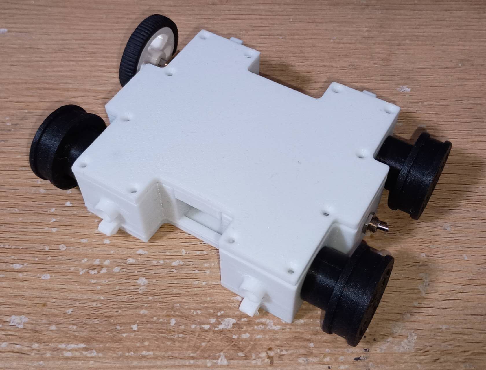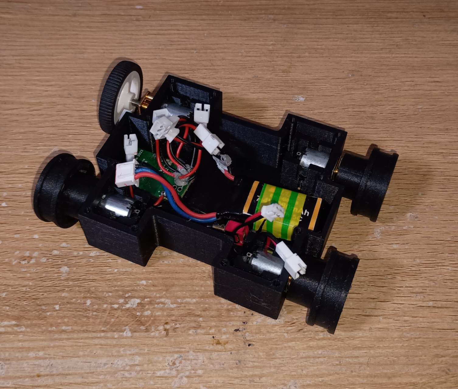 I utilized the side holes and the motor-wheel placement to create simple side armor that will protect my wheels from spinners. I need to further polish and design and build final versions of them in PETG.