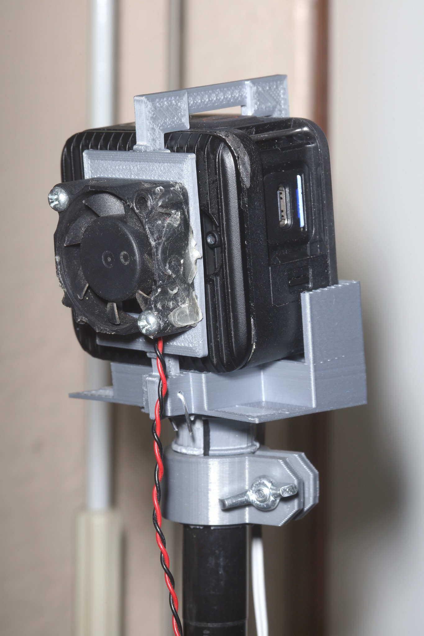 The gopro also needs the fan when connected to USB.
