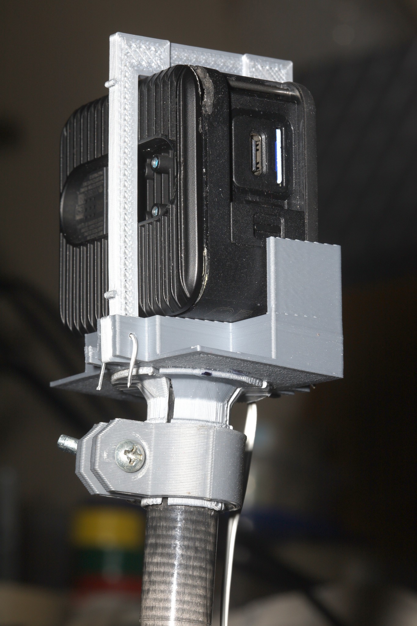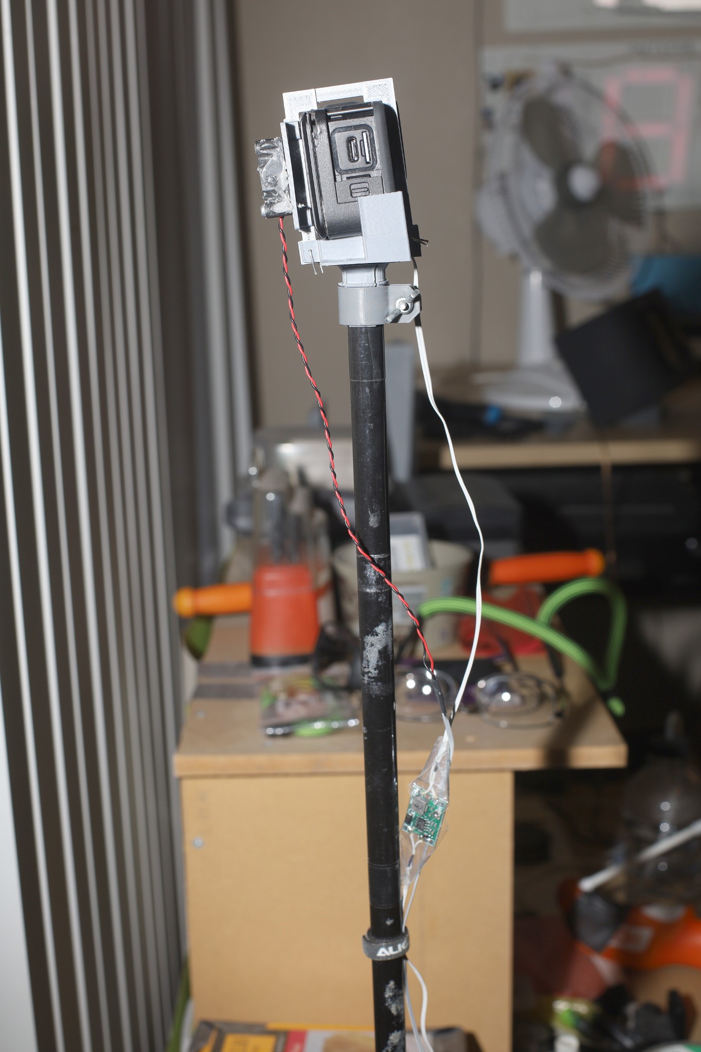 It managed to go for over an hour in outdoor high 80's, with the 30mm fan, at running speed. The fan was running on 7V from the headlight circuit. The rotor fell off all the time until it was lost. After that, the camera quickly overheated. The fan overheats too, without a rotor. Once the lubrication dries out, there's no way to add lubricant without destroying the C clamp so they're landfill. There could be a strap to keep the rotor in.