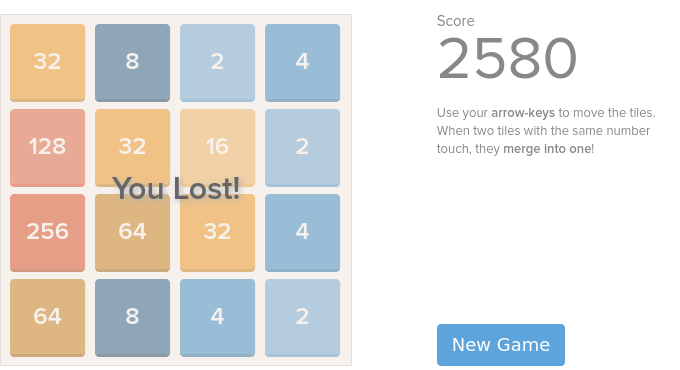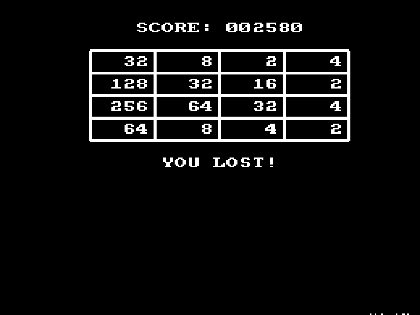 After all the explanation, here's the drawing of the losing screen of the 2048 game on the system (I still need to implement the gameplay):