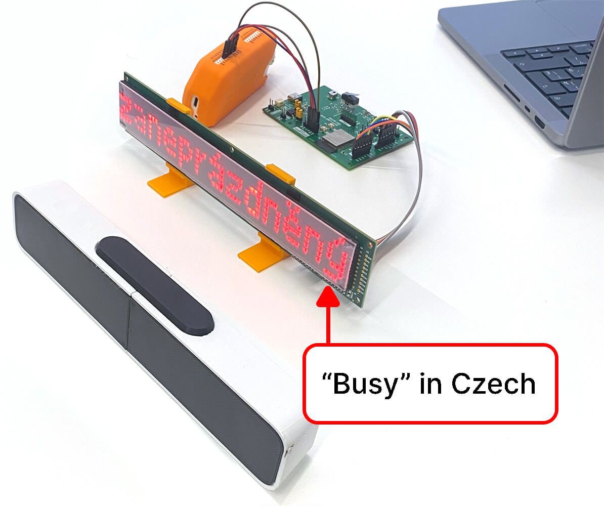 This project was born out of our own frustration with open spaces — there are just so many distractions that it's nearly impossible to focus. BUSY Bar is our attempt at creating a big “SHUT UP” button. When pressed, it uses physical displays and digital integration to silence the space around you, so you can actually get some work done.