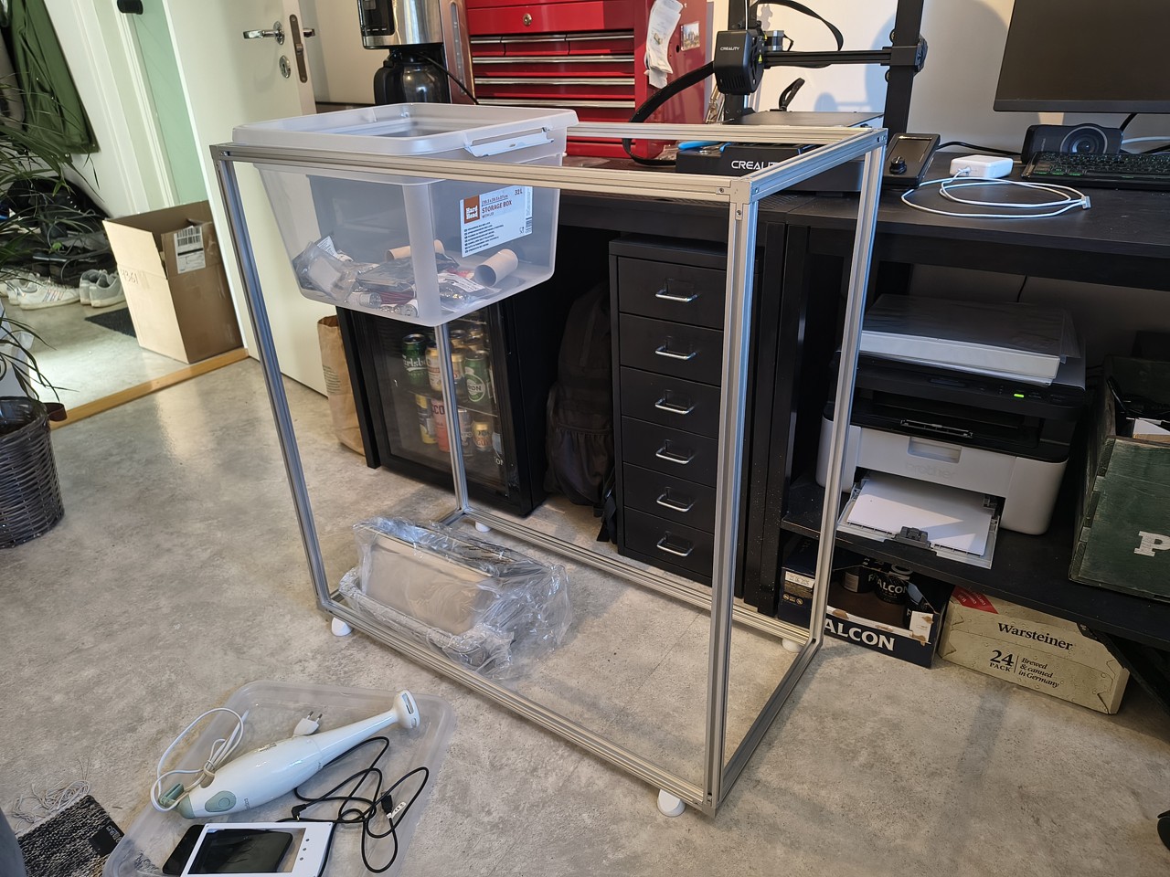 Aluminium extrusions are mans best friend. Modular and easy to assemble, and compared to the good old days they are surprisingly inexpensive. The entire housing (40x80x80cm) costs around $60 which I think is very affordable, especially when I will be able to produce a lifetime worth of toilet tissue. The entire build will cost around $500 which is substantial, but imagine the billions it will save me on butt wipes. And not to mention the hundreds of hours of fun designing and assembling and tuning it...