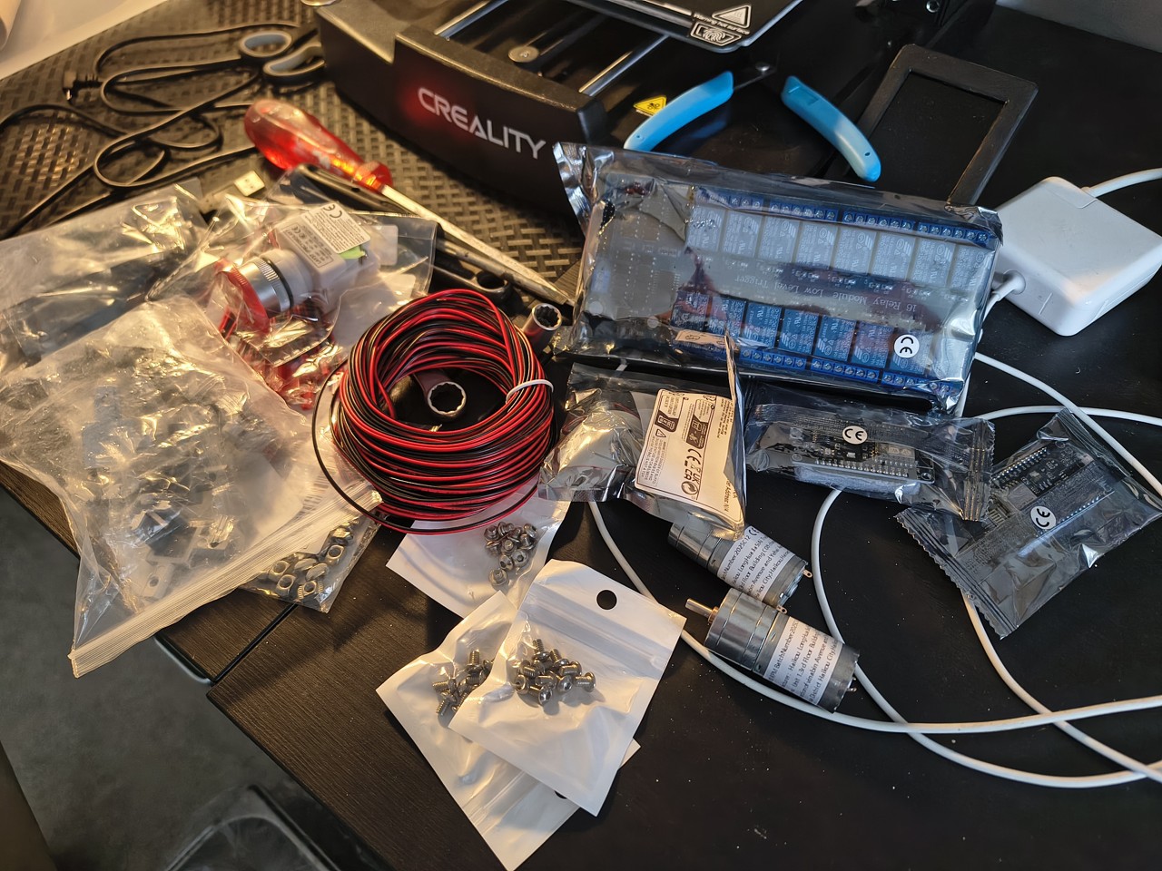 Thank god for dirt-cheap electronics from an unnamed chinese shopping portal, because it allows for this amazing project without breaking the bank. Cables, microcontrollers, screws and lots more. Also a bunch of aluminium t-profiles that will make up the frame. So stay tuned to see how it all will come together!