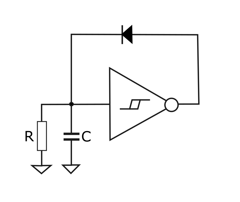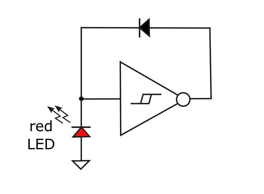 This is a circuit using an inverting Schmitt trigger to generate a sawtooth wave. The diode rapidly charges the capacitor, and the resistor slowly discharges the capacitor. The frequency of this oscillator depends on the values of R and C. If a light dependent resistor is used then the frequency will depend on how much light is hitting it. Low cost LDRs you can order from Aliexpress will very likely contain toxic heavy metals such as Cadmium,