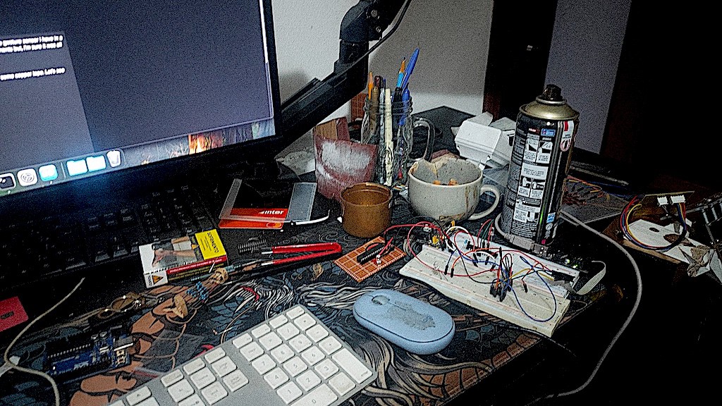 Now – as I think I haven't suffered enough – I've decided to try a gesture touchpad using an ATMEGA328P and some copper tape. Let's see where I can get with that now.