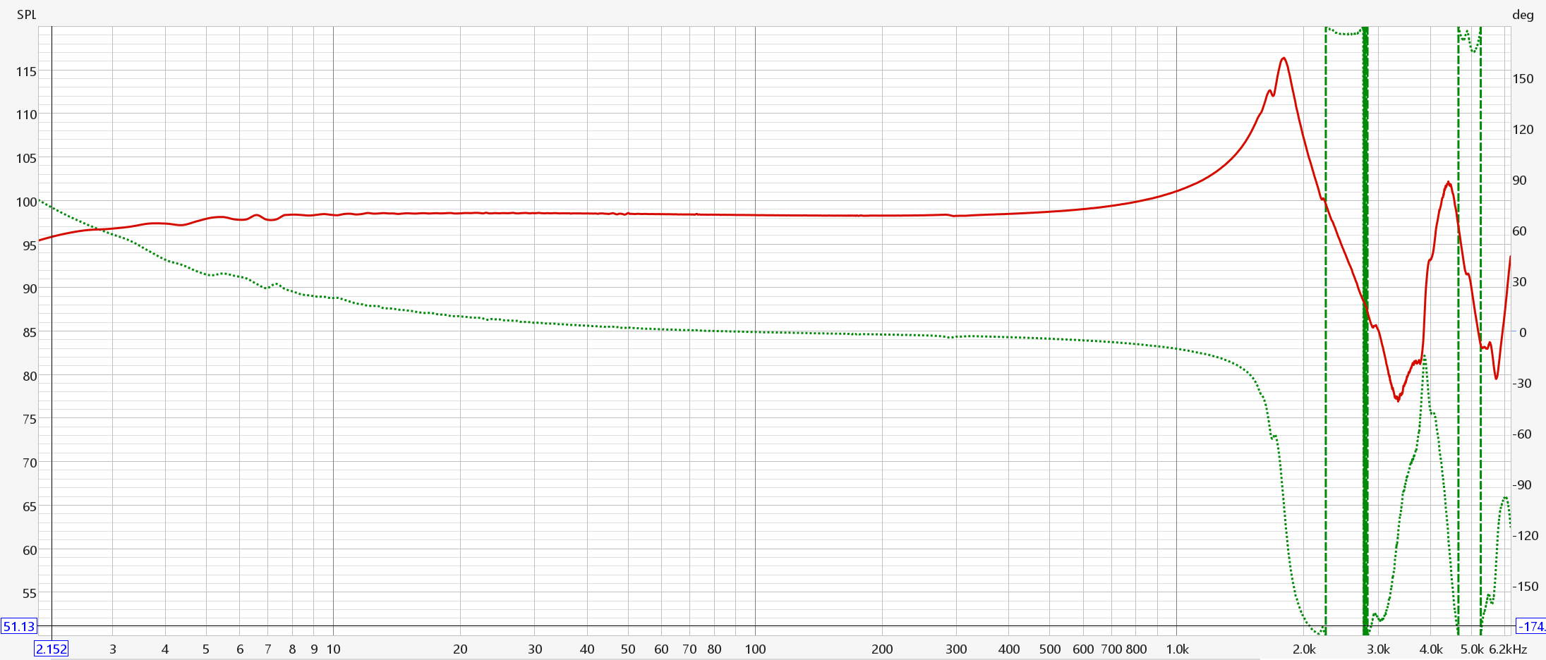 Now, if we apply voltage to speaker's motor, it develops a force proportional to applied voltage (for magnetic drivers, the force is U*BL/Re). Since the microphone and the trapped air are incompressible, all of this motor force is canceled by the pressure of the trapped air. Microphone is supposed to measure this pressure.
