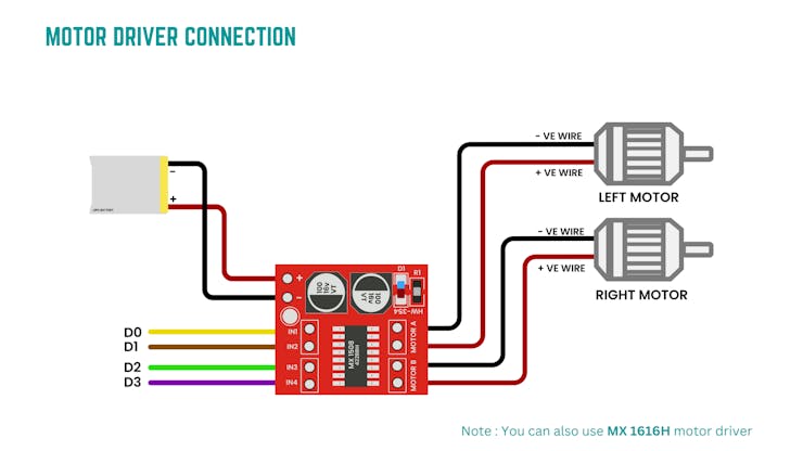 - Motor driver: MX1508/ MX1616