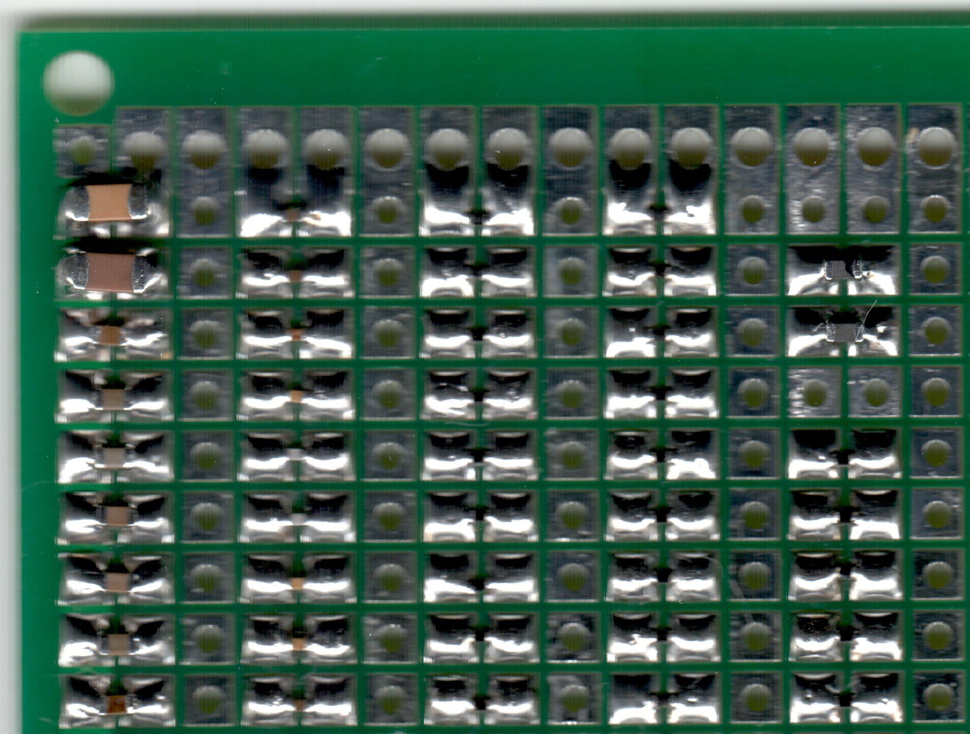 Once you have desoldered all components and soldered them onto the prototyping board, take a photo of the prototyping board with the components. Using Inkscape, add the component names onto the photo of the prototyping board so you know where each component is located on the experimental board.Use desoldering braid to remove the solder from the board—on both sides.After that, clean the board with solvent (e.g., paint thinner).Scan both sides of the board with a scanner.Scan both sides of the board with a scanner. For this PCB, I used an HP SCANJET SJ300 scanner at a resolution of 1200 DPI. It's not the best, but it works for this board.
