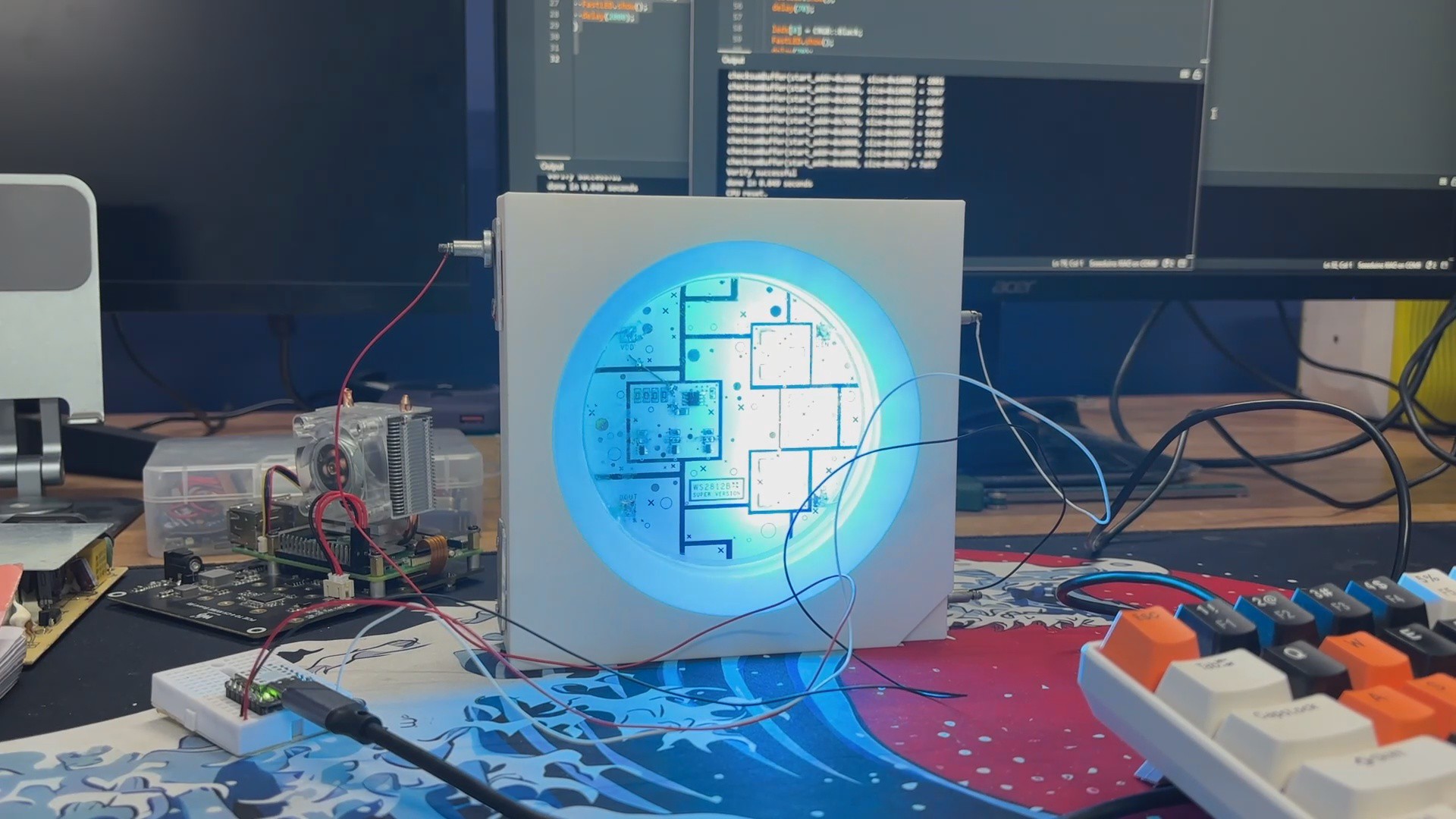 This latest version finally brings everything together: a fully scaled-up model, high-brightness LEDs powered through MOSFETs, a far cleaner and more reliable circuit, and a clear epoxy finish that makes it look like a true oversized WS2812B.