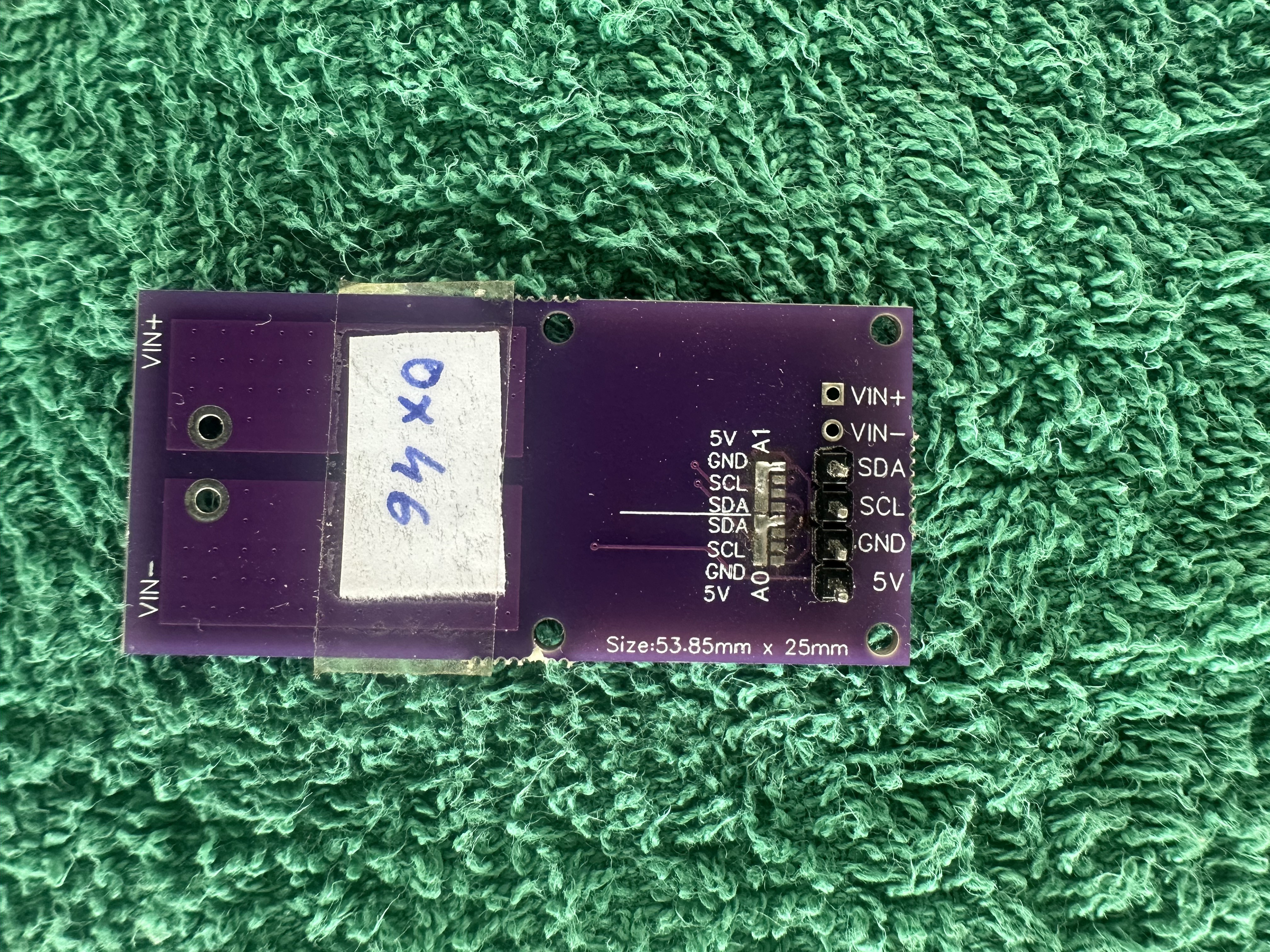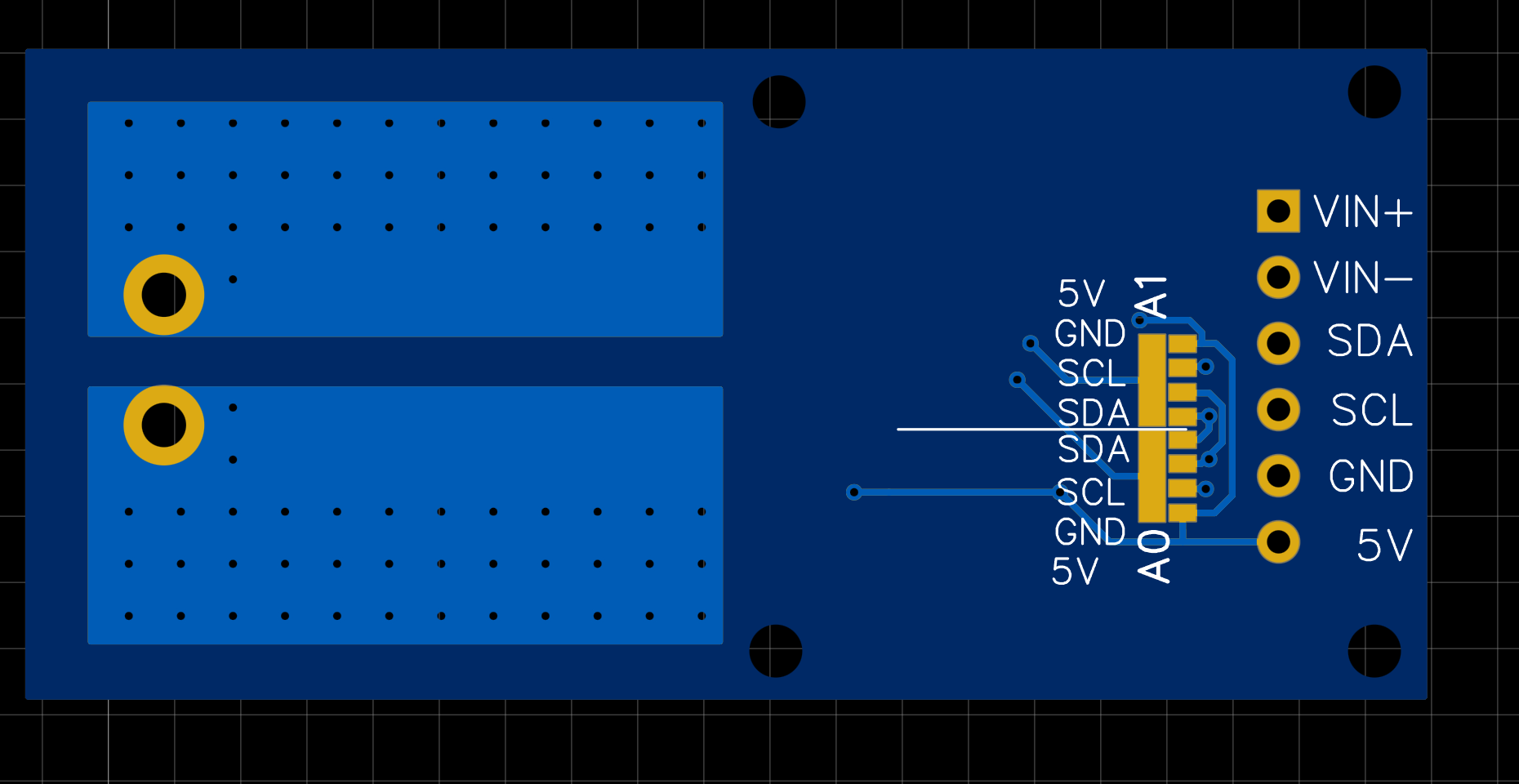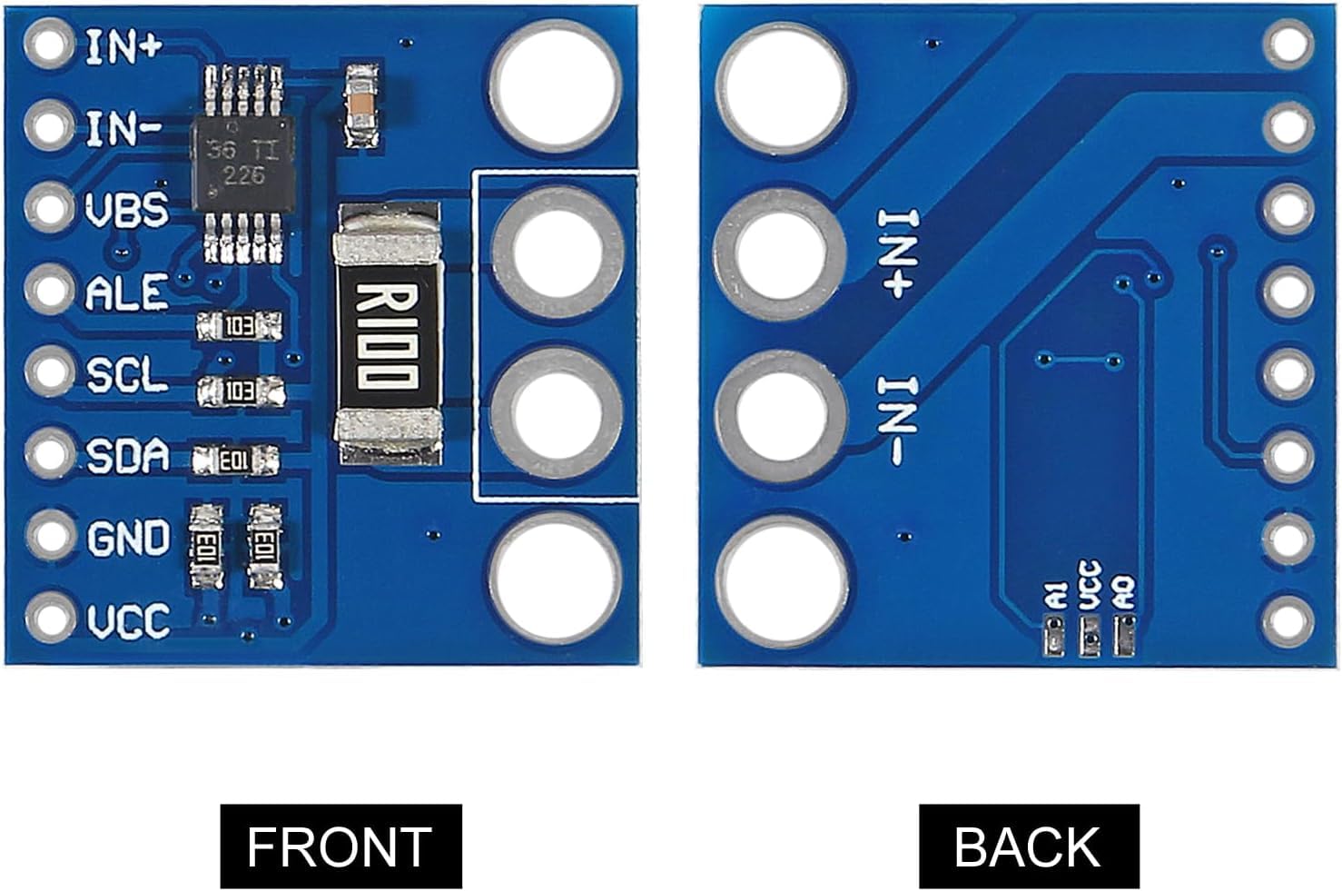 - Perfect Labeling: The front labels (VIN+, VIN-, SDA, SCL, GND, 5V) are aligned, readable, and use a logical pin order that matches the schematic.