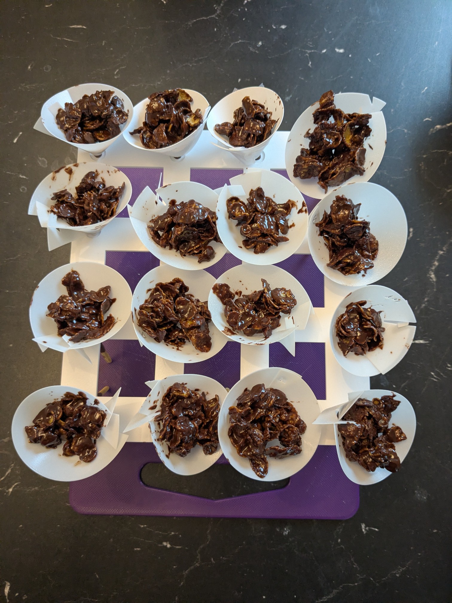 The only difference compared to a regular sand rose is the “mikado” stem, that need to stand up in the middle of the chocolate and flakes mixtures while it cools down. So you need some kind od structure to keep everything together