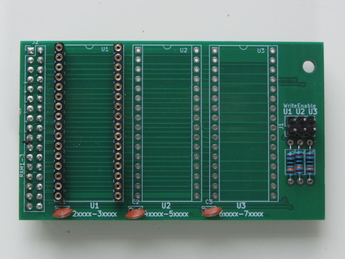 The original RAM Disks are quite complicated and used a proprietary Gate Array chip and dynamic RAM. With the integrated auto address increment functionality implemented in a GAL, it is not trivial to make a replica. With some GALs it is now possible using mostly easy find parts.