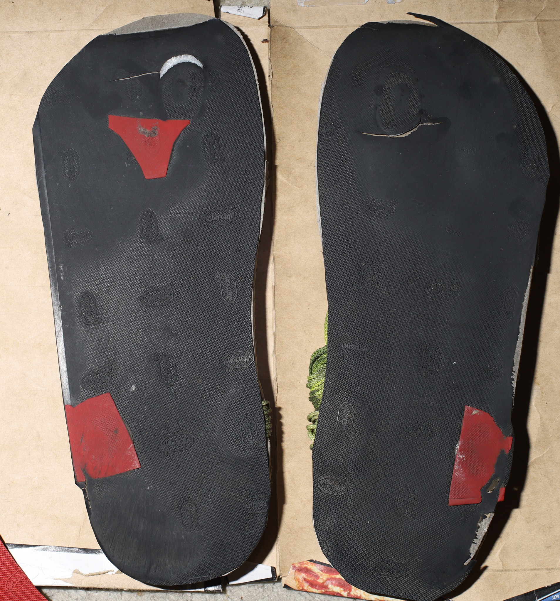 1mm Vibram soling sheet for the bottom, adhered with E6000: