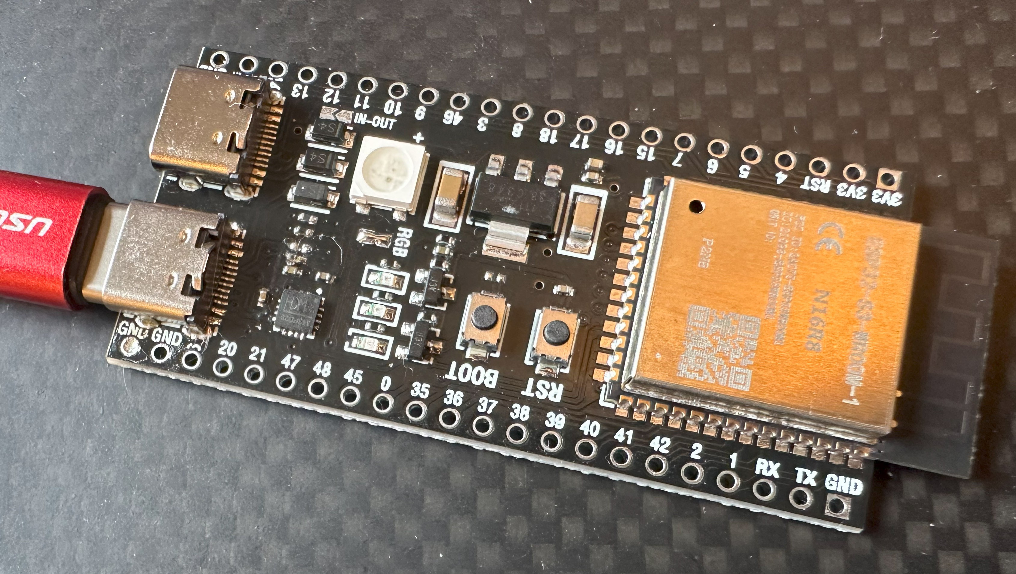 I bought this ESP32-S3 board as part of a batch and it just wasn't working like the others. Firstly, I discovered that the RGB link needs to be joined for the on-board WS2811 pixel to work. But more important was finding the cause of the fault.